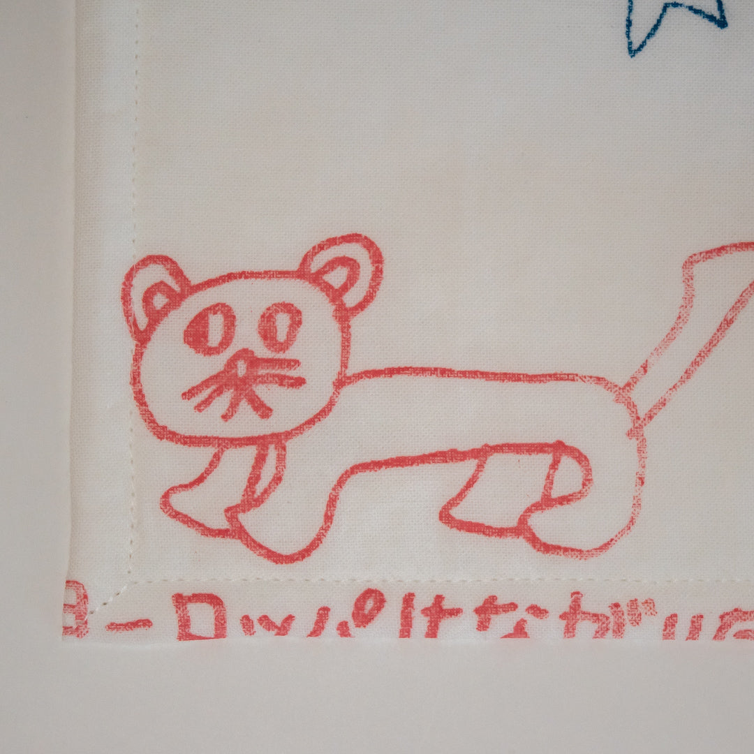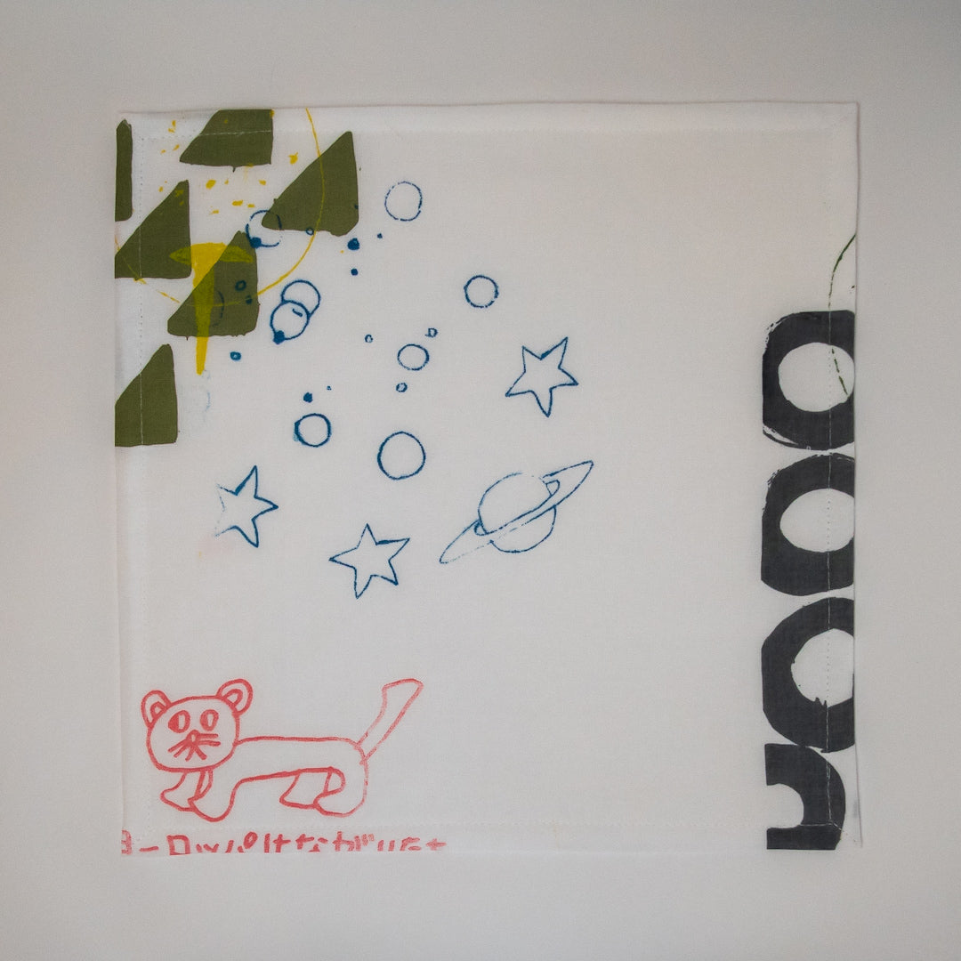 【サイズ】24.5cm×24.5cm【素材】晒 白 綿100% シルクスクリーンインク(シルクスクリーン印刷)