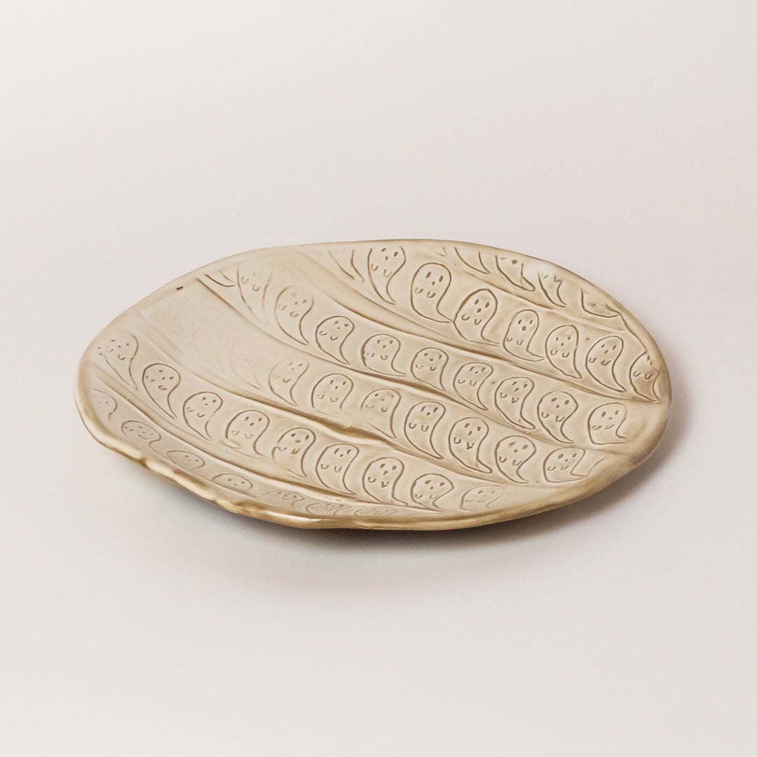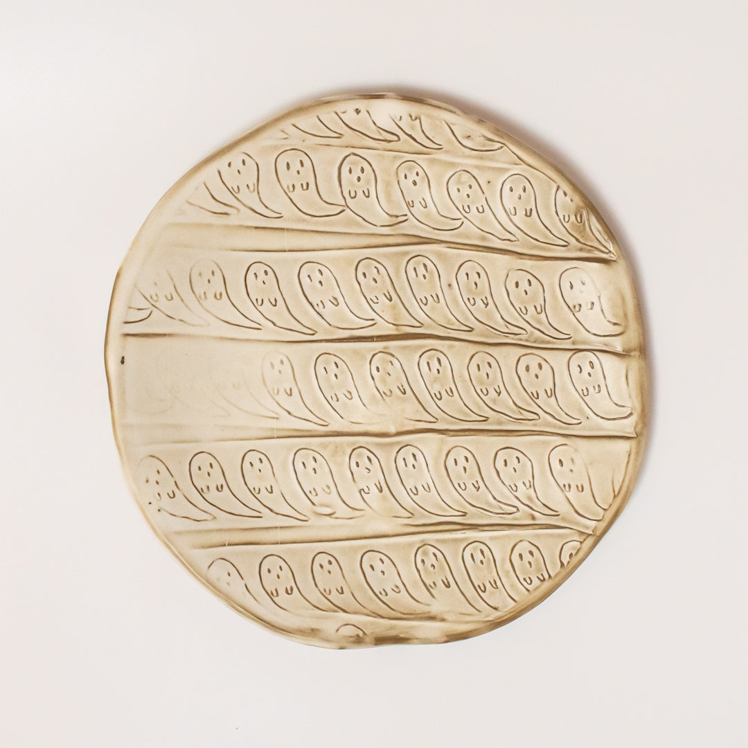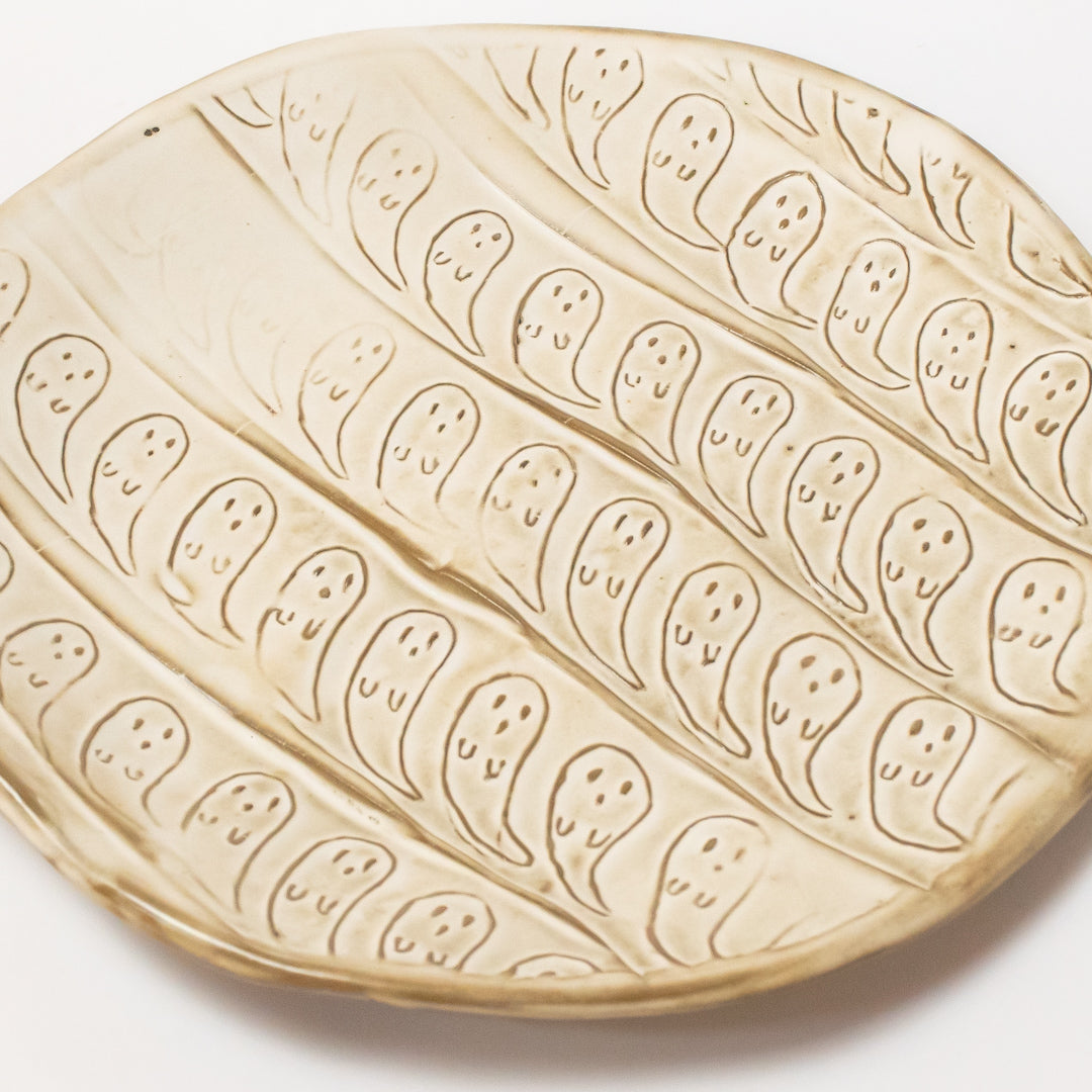 おばけ柄の中皿です。ひとつひとつ手作りの為、多少、形状や大きさ、模様に差異があります。