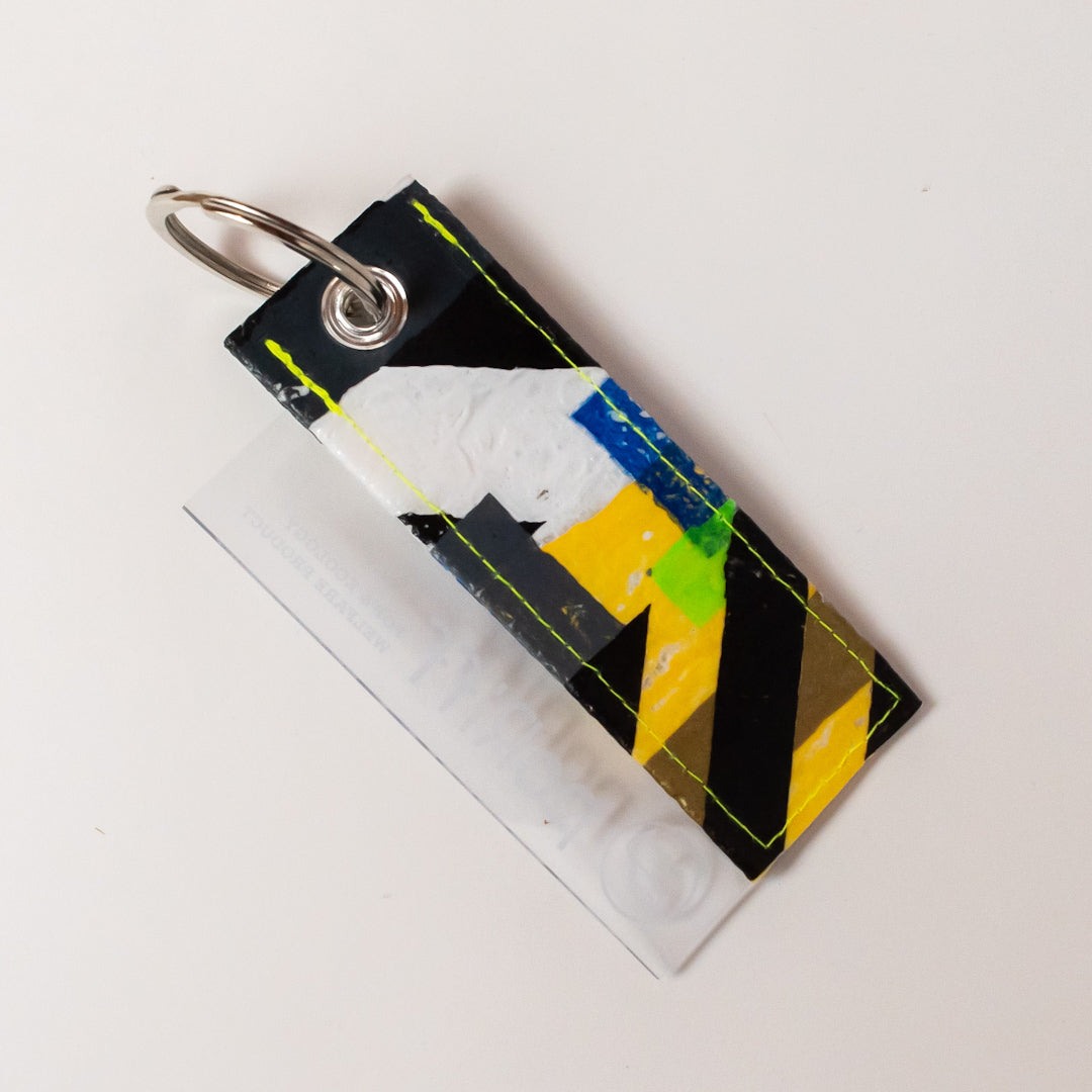 一見捨ててしまうような買い物袋たちをコラージュし、熱で圧着して完成するシートを使用してプロダクトに変えています。