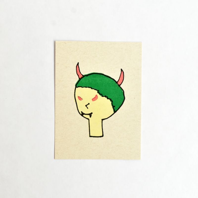 それいゆの福祉作業所は、静岡県にあります。ペロペロキャンディや、アクマ、からかさおばけなど、ユニークで可愛らしいカードが出来ました。インクで着彩してあります。