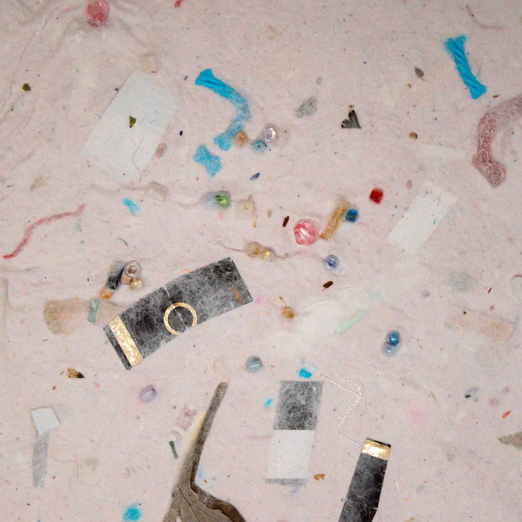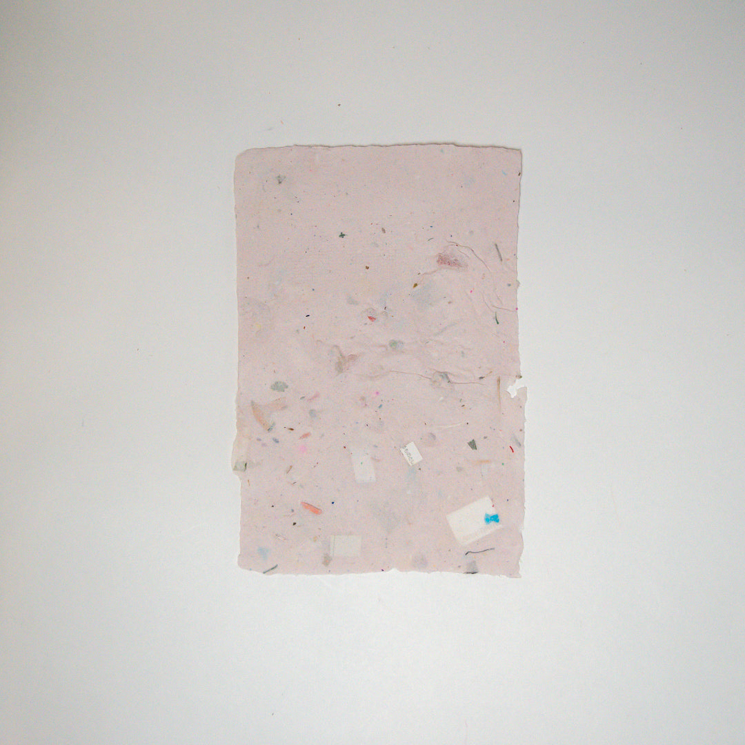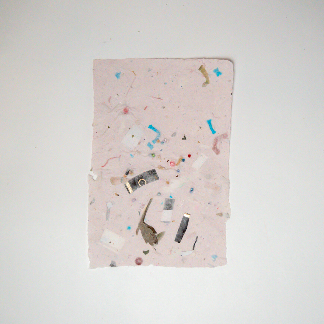 しのぶさんが作るオリジナル紙漉き製品です。草の葉や種、鉛筆削りで出たカラフルなやつ、包装紙の切れ端...季節や気分のネタを入れて、自由に製作しています。