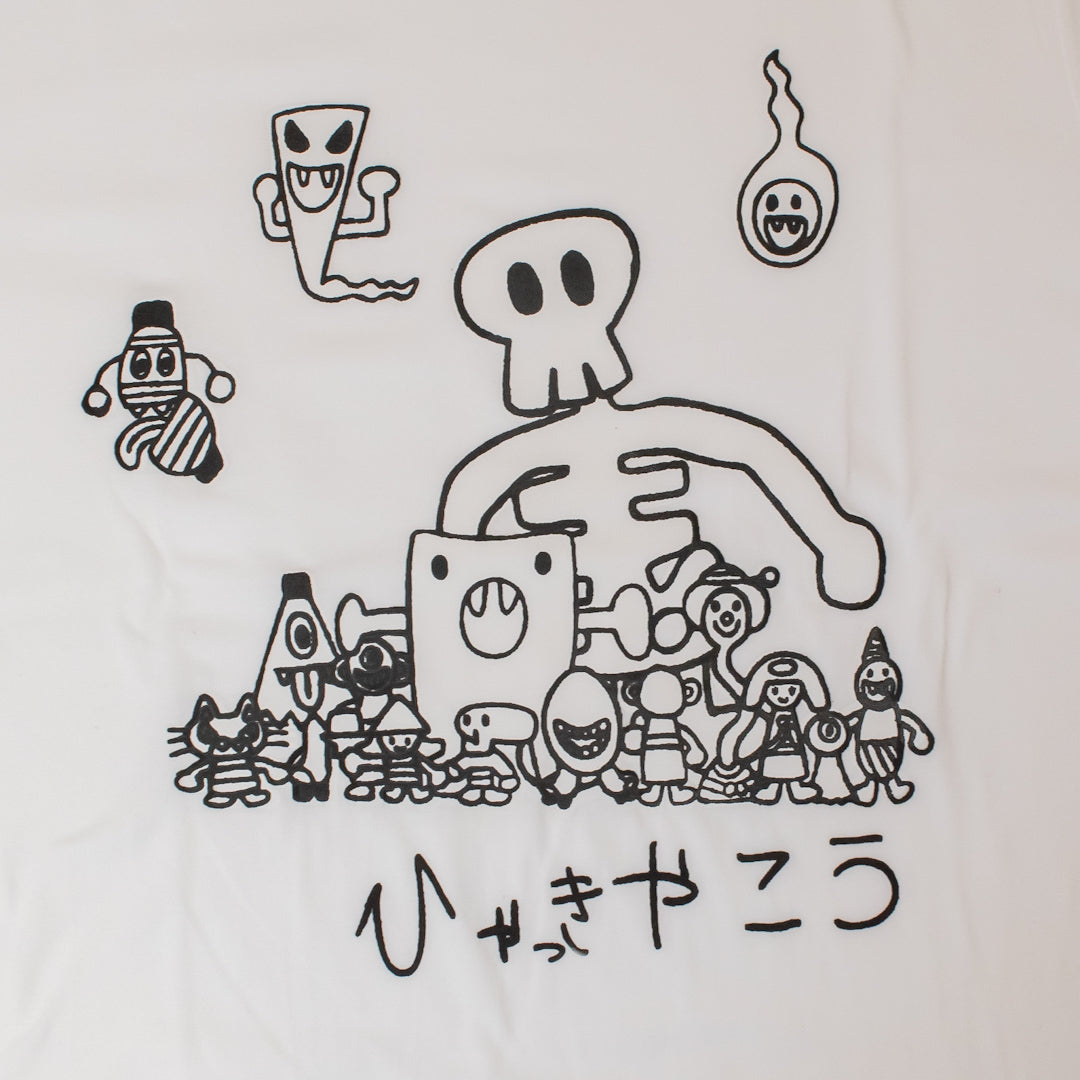 妖怪が大好きな波多さんが、画用紙いっぱいに描いたユニークで愛らしい妖怪たち。そんな特別な「ひゃっきやこう」が、Tシャツになりました。ポップでにこにこ顔の妖怪たちが集まる、にぎやかで楽しい夜の行列。個性豊かな「ひゃっきやこう」は、子どもも大人も楽しめる一枚。どこか懐かしく、ほっとする妖怪たちの出会いをどうぞ!