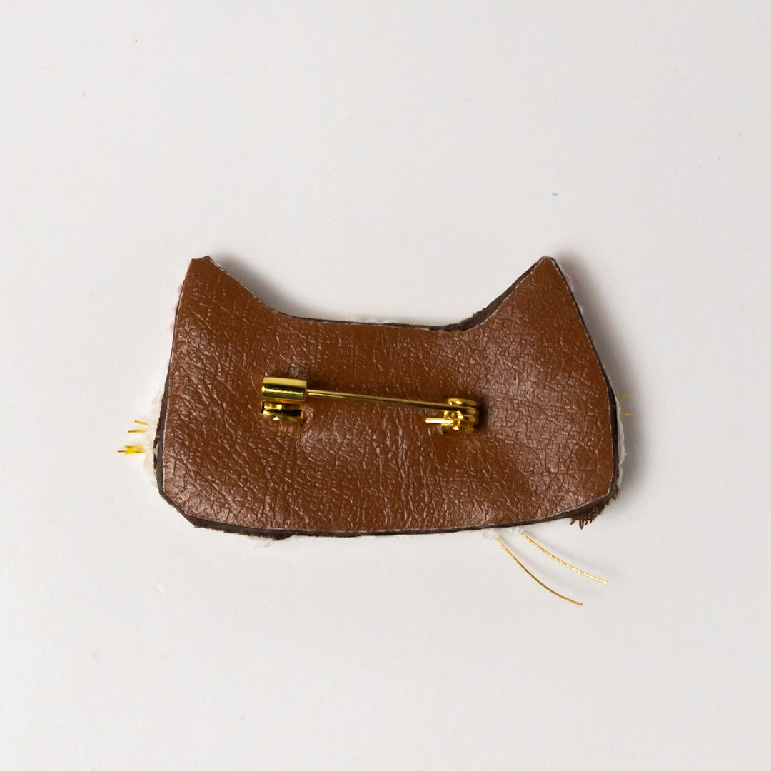 【素材】布(綿・フェルト・フェイクレザー)、刺繍糸、接着剤(ボンド)、ブローチピン