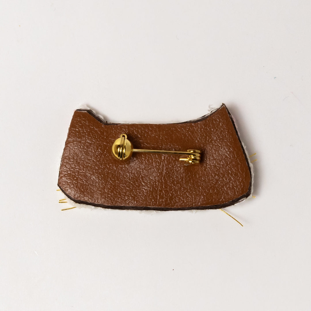 【素材】布(綿・フェルト・フェイクレザー)、刺繍糸、接着剤(ボンド)、ブローチピン