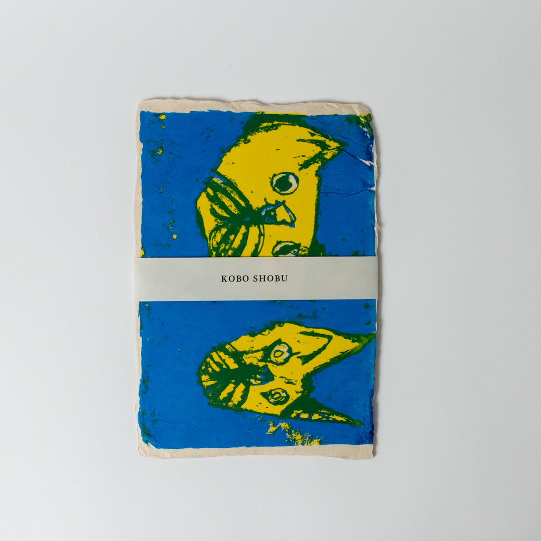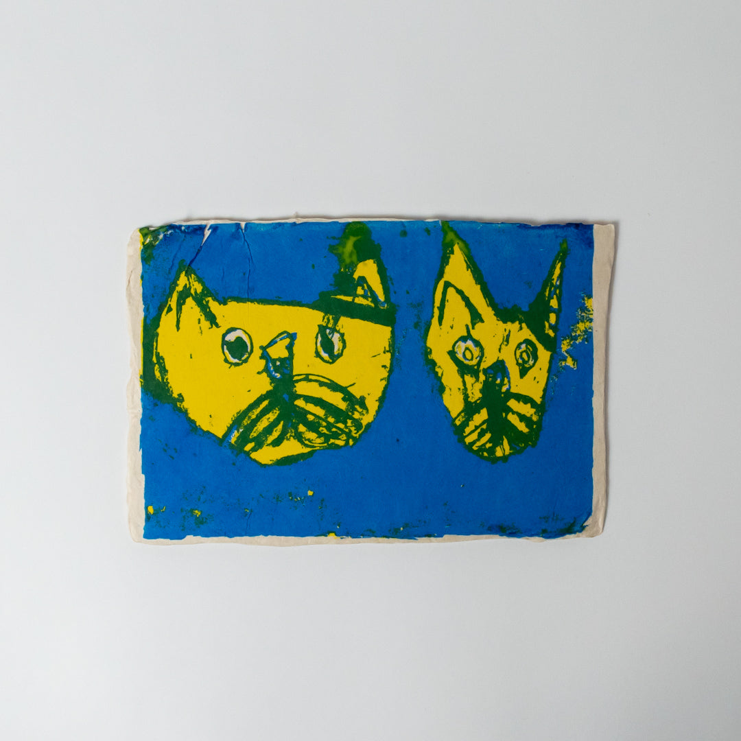 手すき紙にシルクスクリーンでデザイン画を施したはがきです。温かみのある手すき紙とデザイン画の無邪気さがほっこりさせてくれます。
