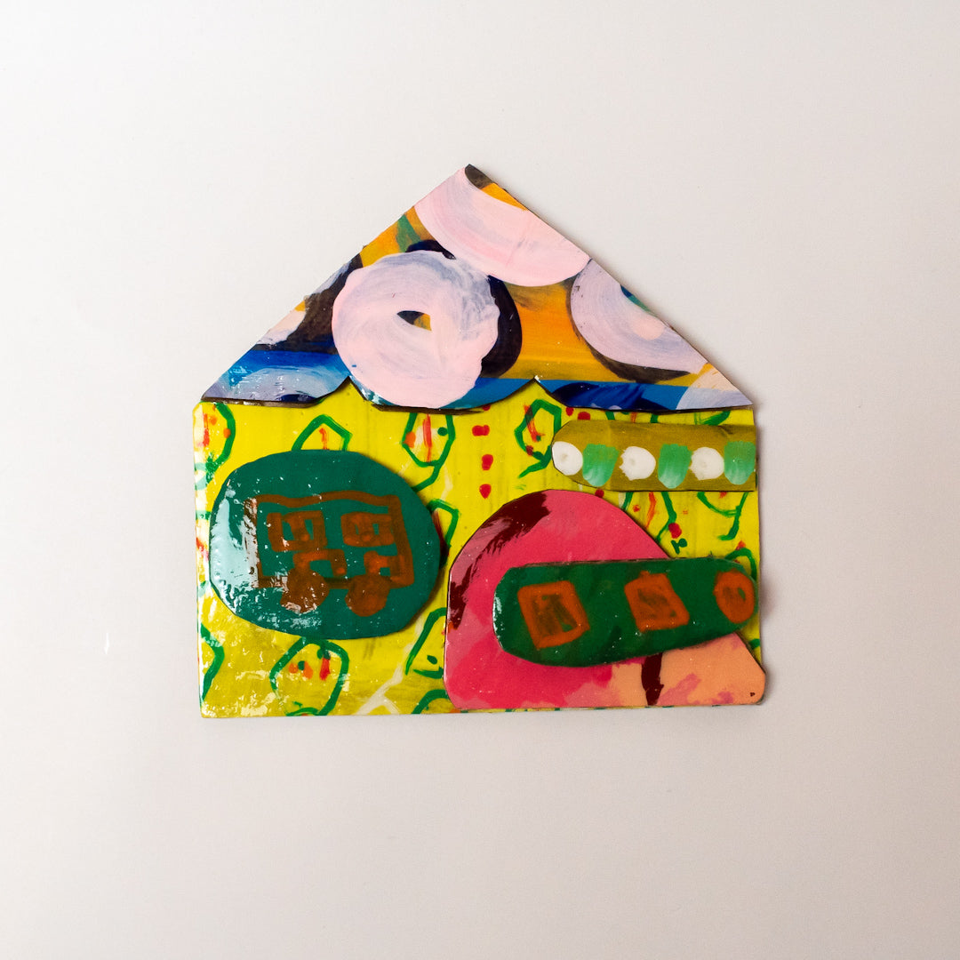 【サイズ】縦4.0cm×横4.5cm【素材】段ボール、絵の具【作家・作品タイトル】ポストカード(家) 小【製造】日本製/しょうぶ学園