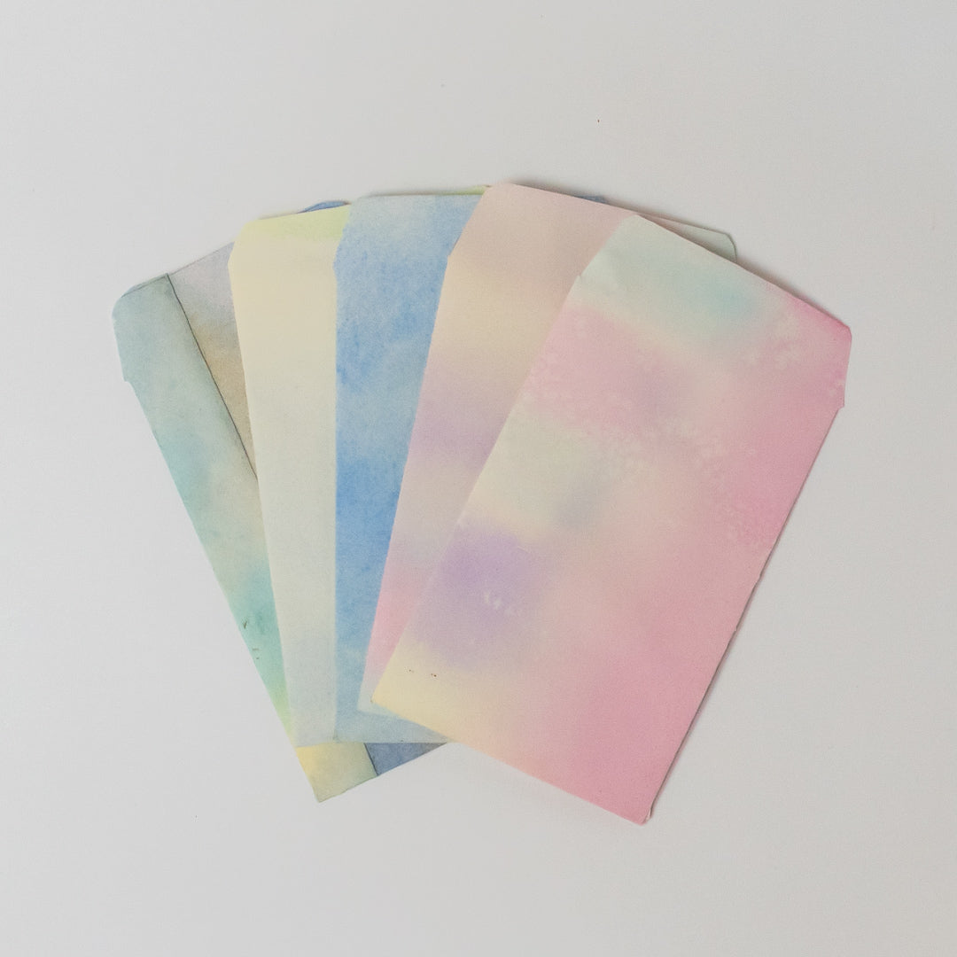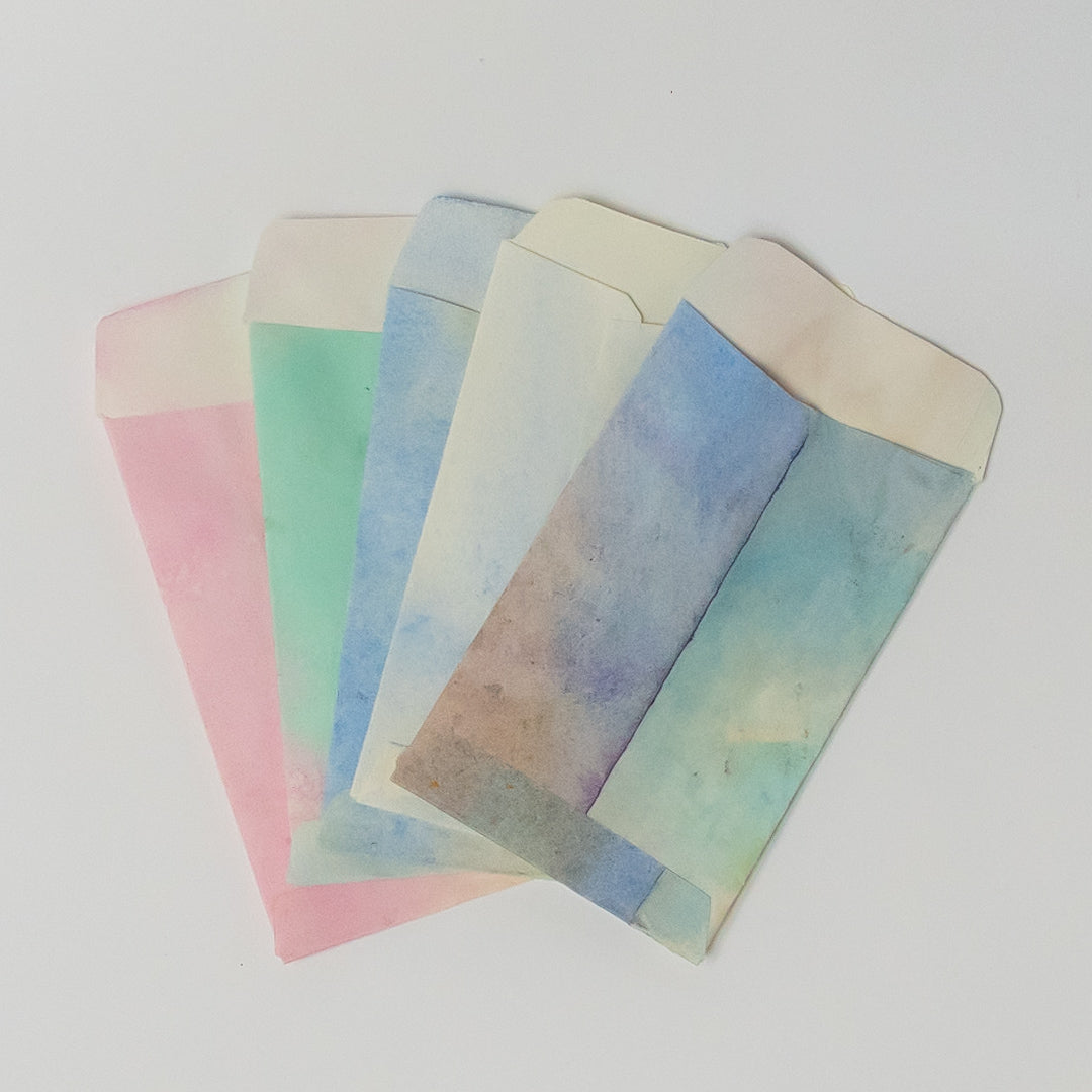 ステンドグラスのように鮮やかで透明感ある封筒で、とても手が込んだ一点ものです。
