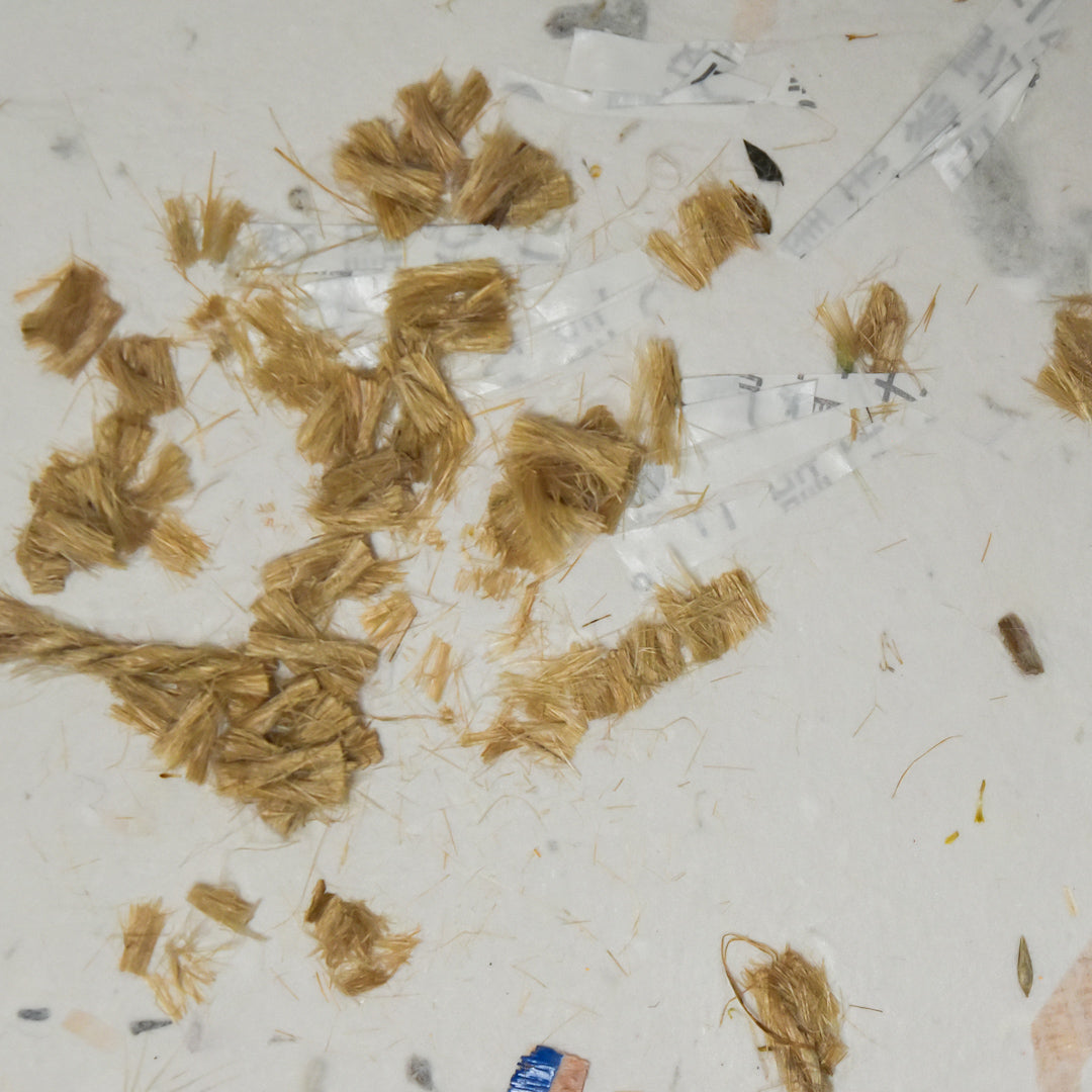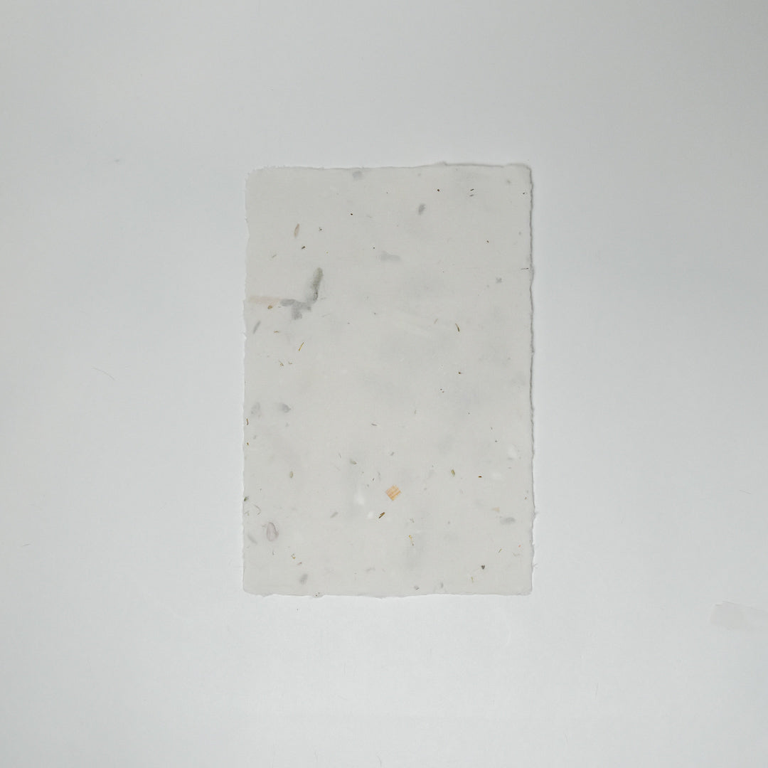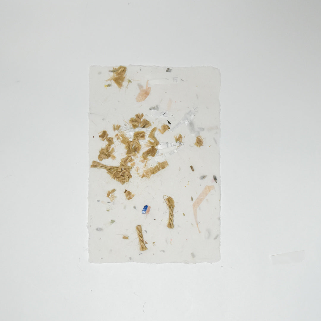 しのぶさんが作るオリジナル紙漉き製品です。草の葉や種、鉛筆削りで出たカラフルなやつ、包装紙の切れ端...季節や気分のネタを入れて、自由に製作しています。