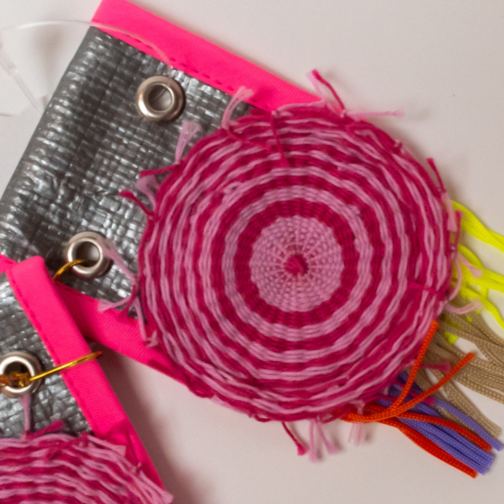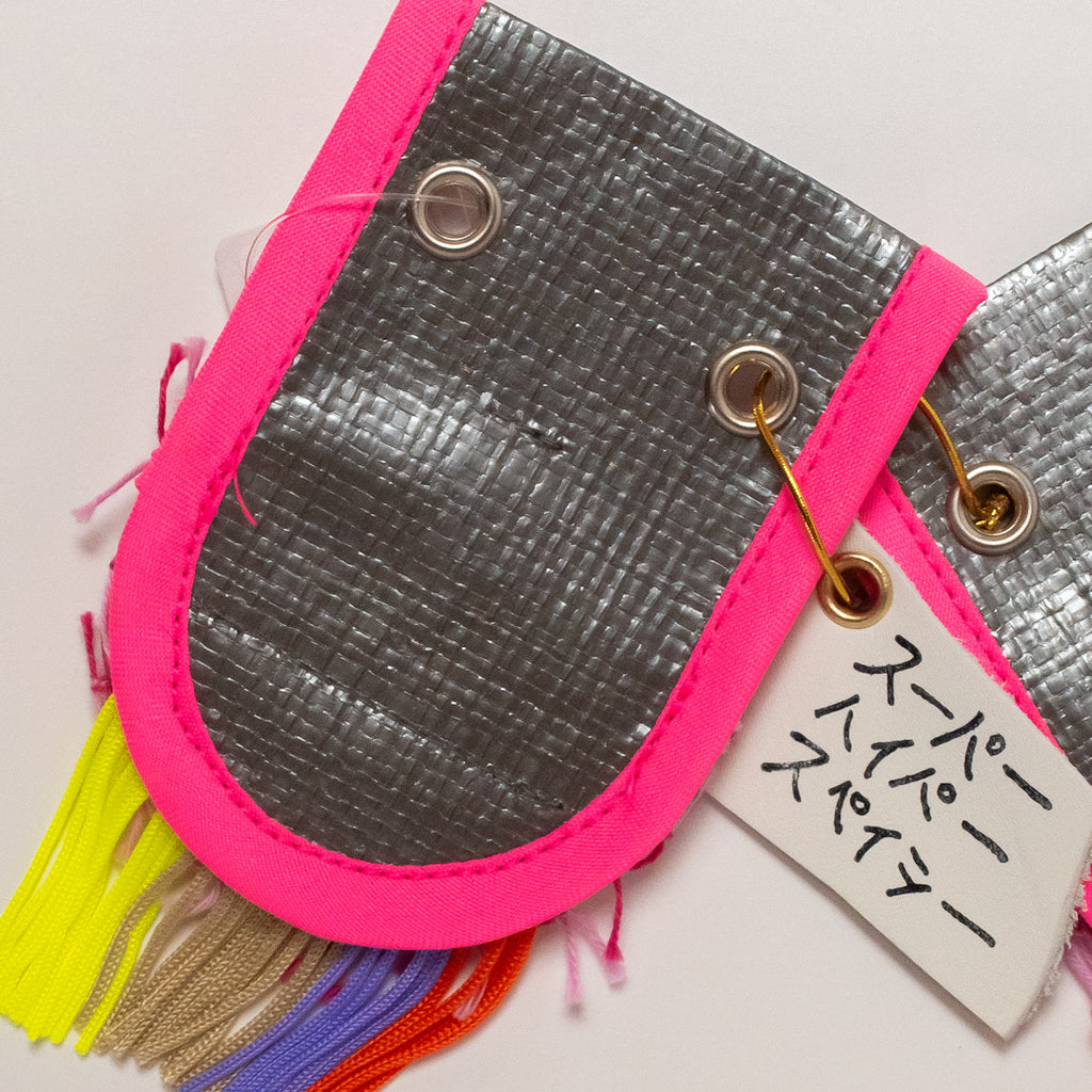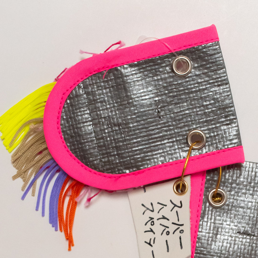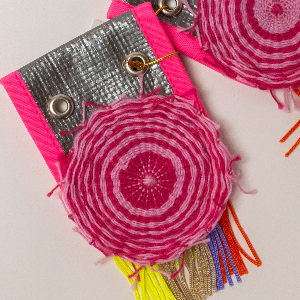 【サイズ】縦11.5cm×横6.8cm【素材】織り糸、ポチエチレン、金具【作家・作品タイトル】スーパーシューアクセ 円盤【製造】日本製/西淡路希望の家