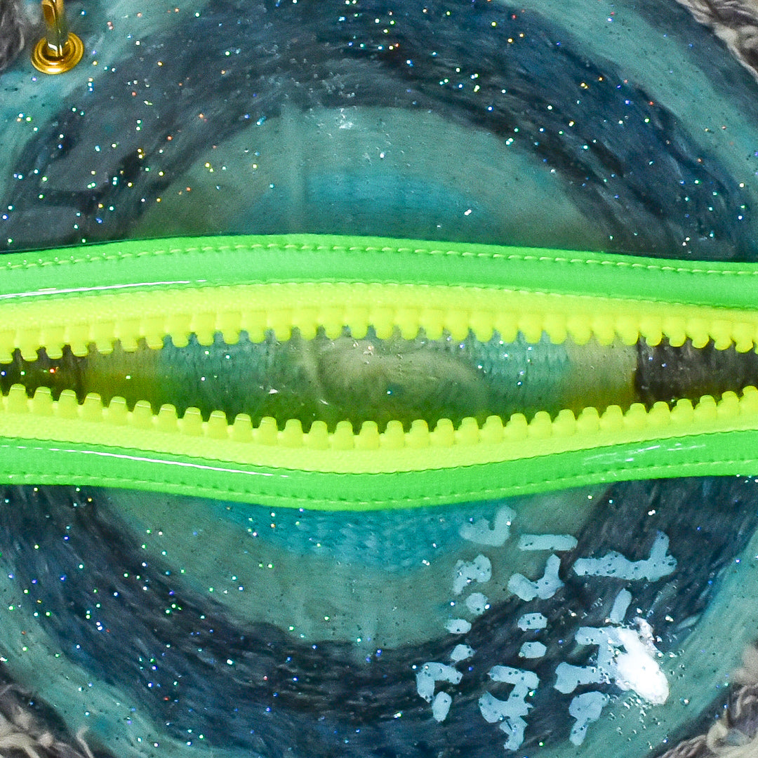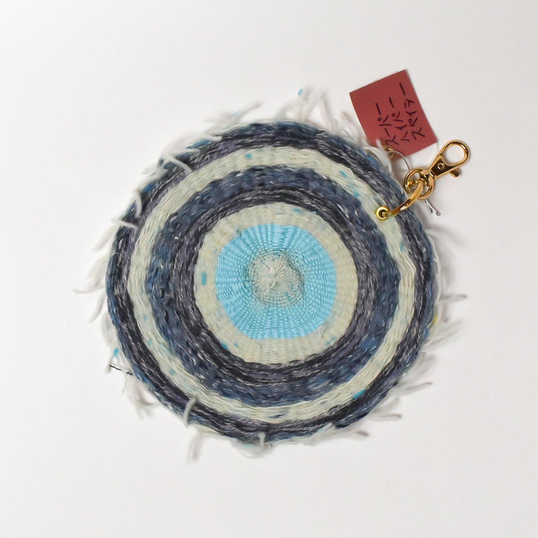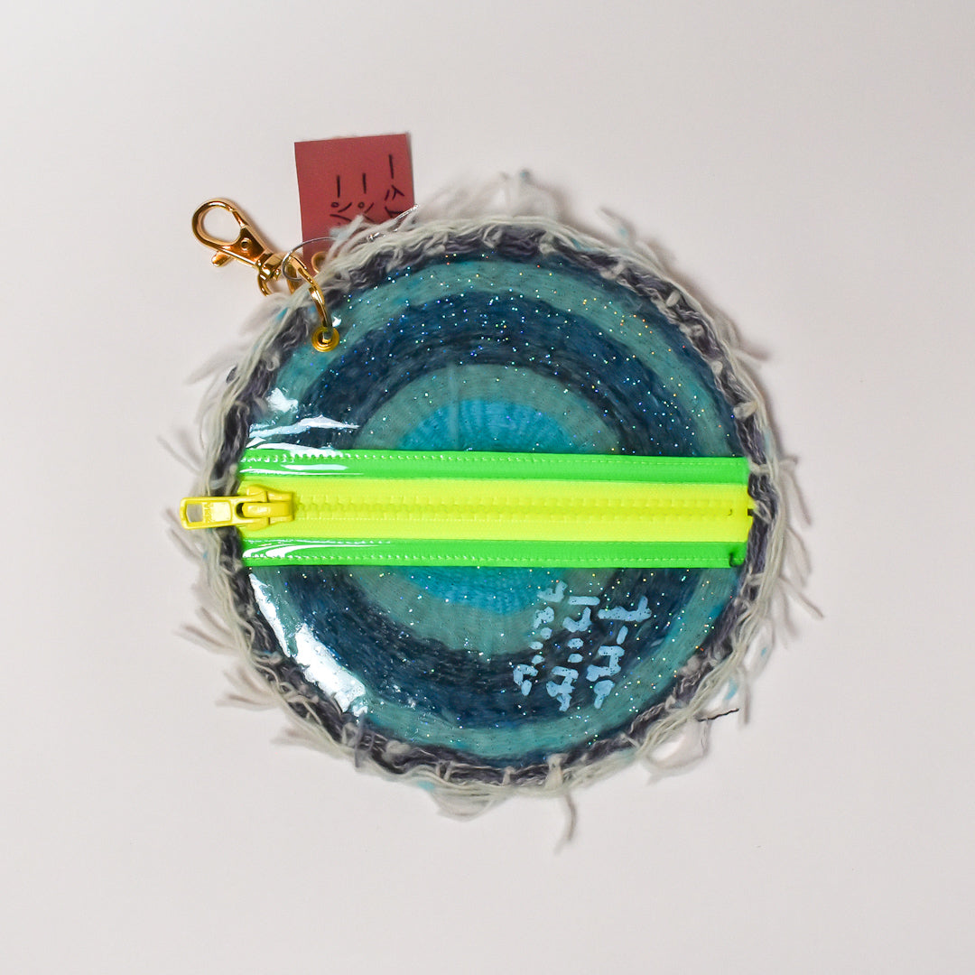 【サイズ】直径約15.5cm【素材】織り糸、ポリエチレン、金具【作家・作品タイトル】スーパータイラーポーチ 円盤.刺繍.織【製造】日本製/西淡路希望の家