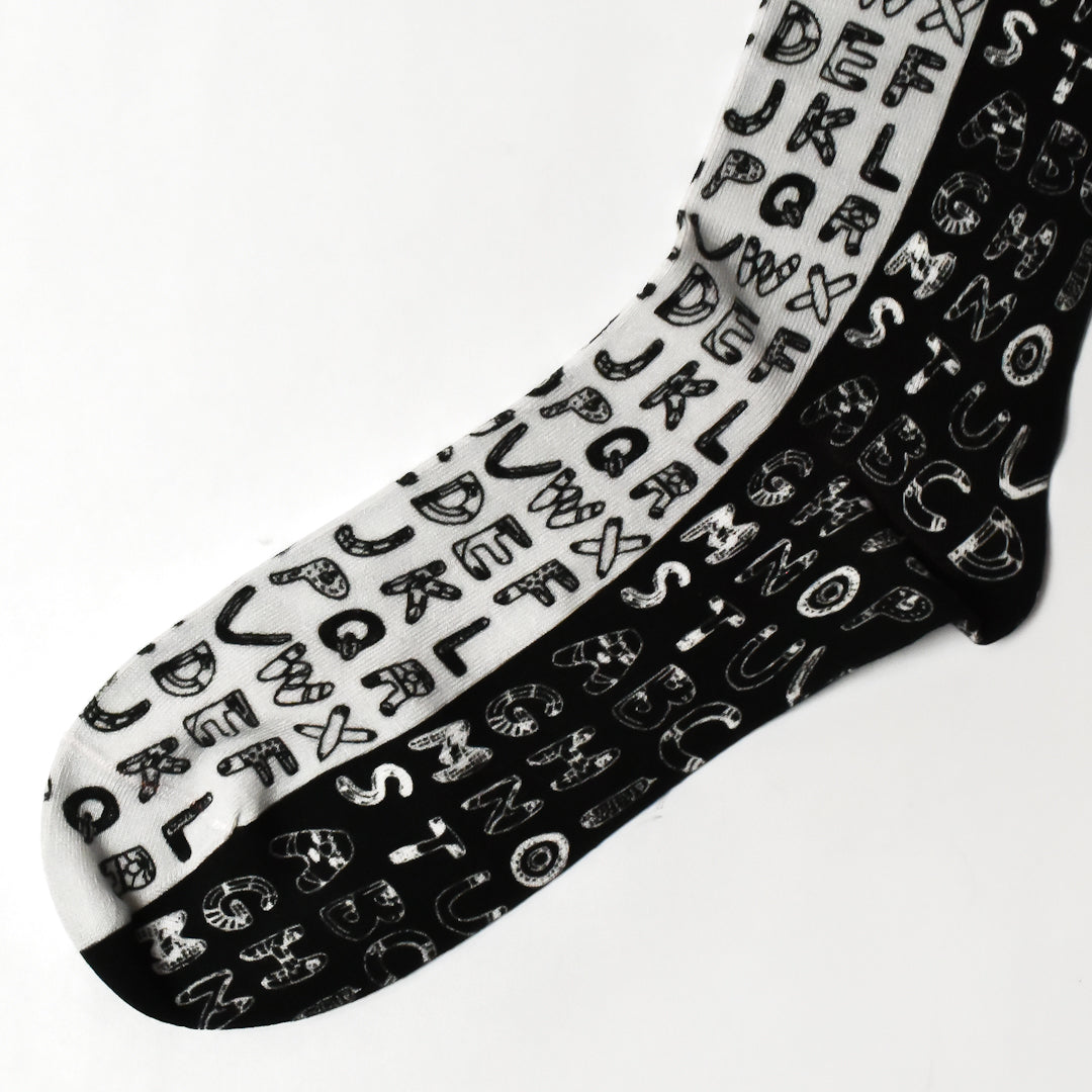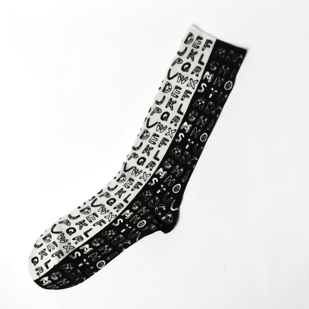 アーティストの作品がデザインに使用されたプリント靴下は、コーディネートのアクセントに。