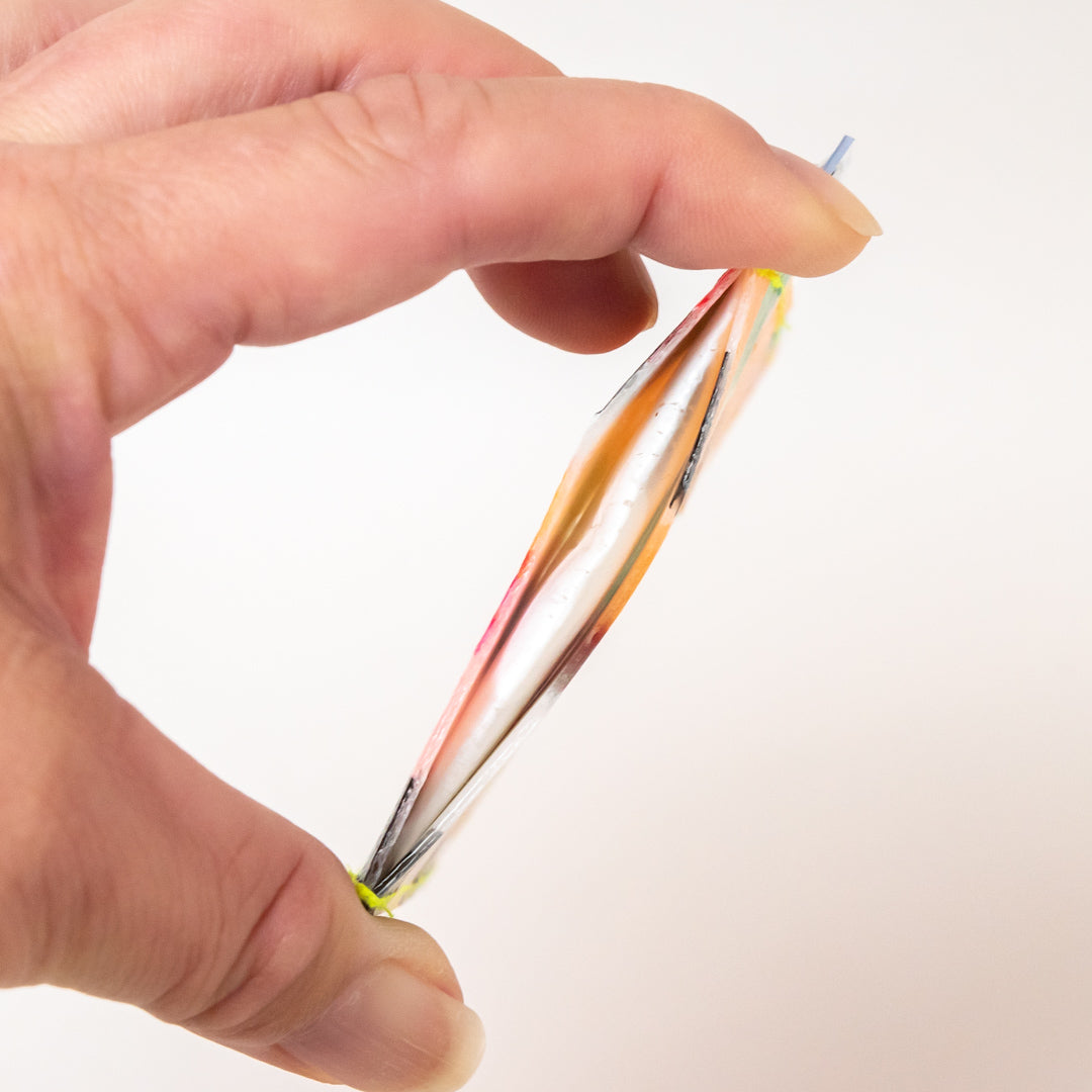 一見捨ててしまうような買い物袋たちをコラージュし、熱で圧着して完成するシートを使用してプロダクトに変えています。