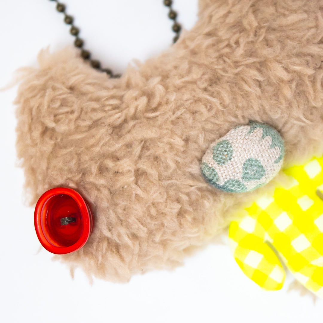 目に使用しているボタンは、フランスのアンティーク物やシェル・ウッドボタン、洋服等についていた可愛いボタン等様々な所よりこだわり集めてきた中からカスタマイズしています。