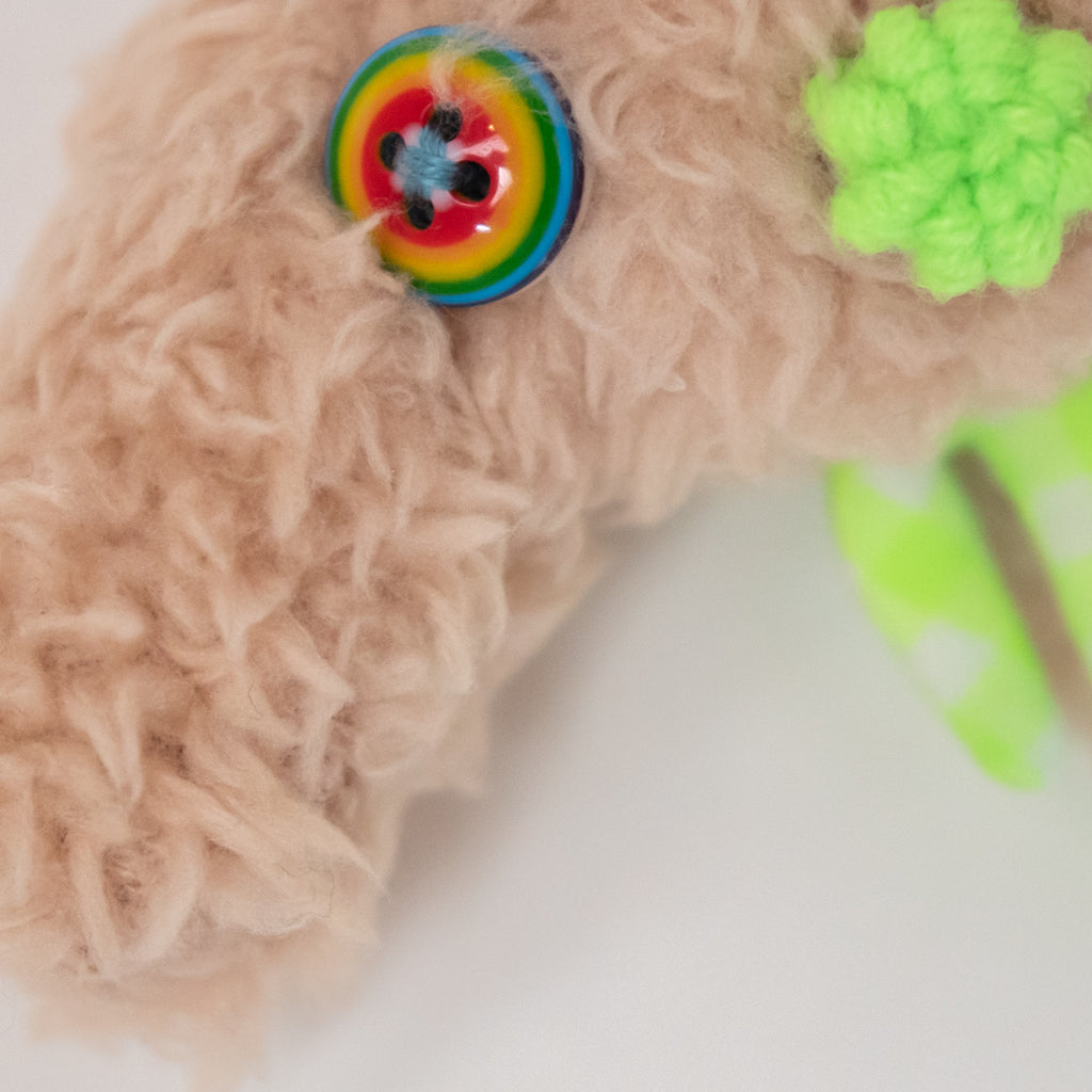 目に使用しているボタンは、フランスのアンティーク物やシェル・ウッドボタン、洋服等についていた可愛いボタン等様々な所よりこだわり集めてきた中からカスタマイズしています。