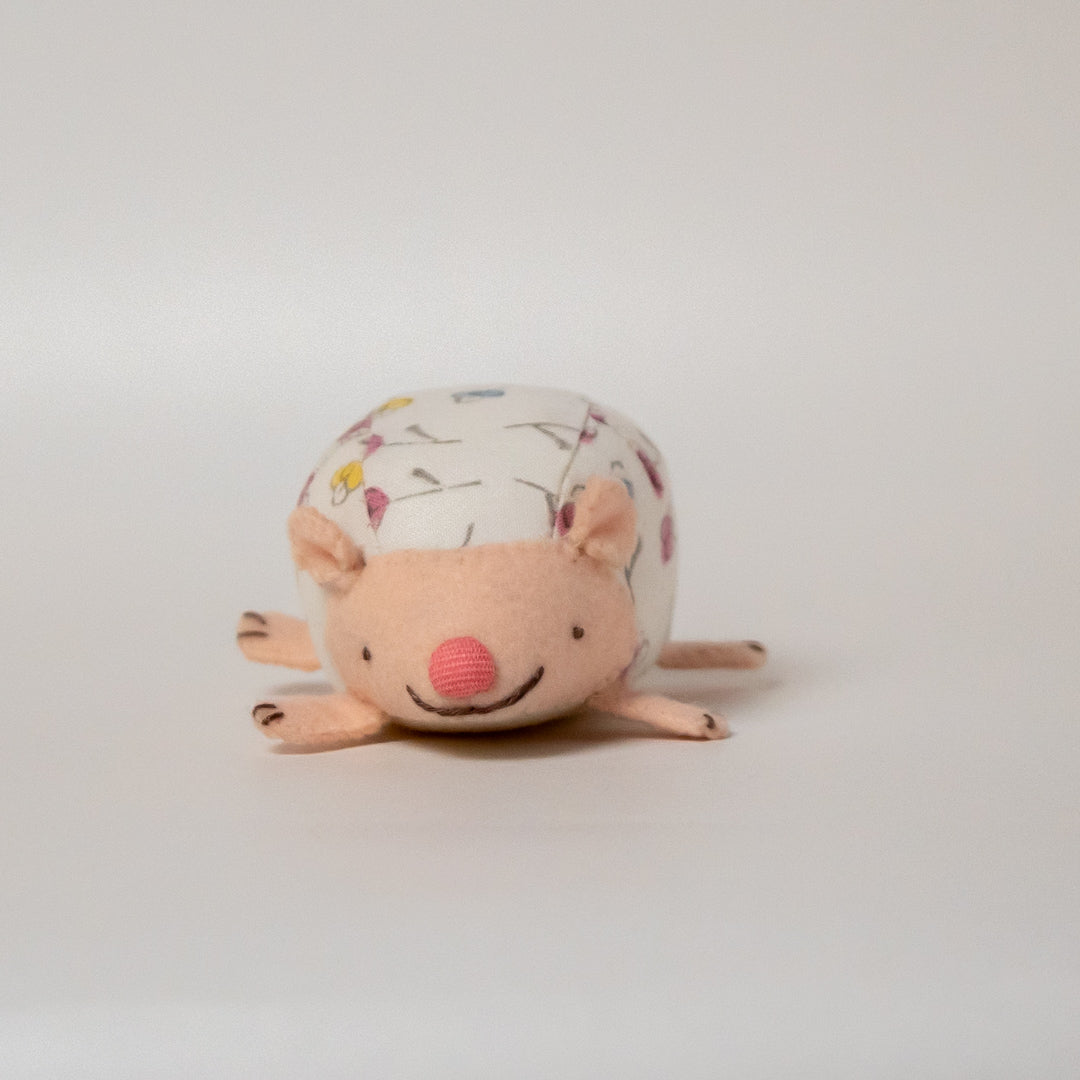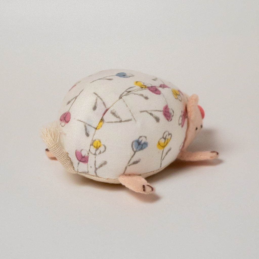 小さなぬいぐるみ。刺繍裁縫等の針山として針を刺すと…針ねずみに!