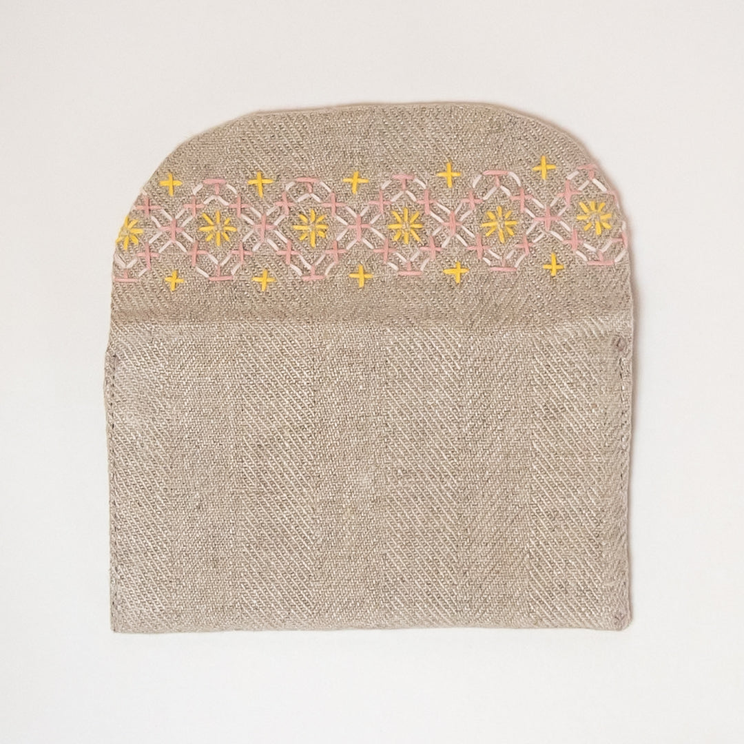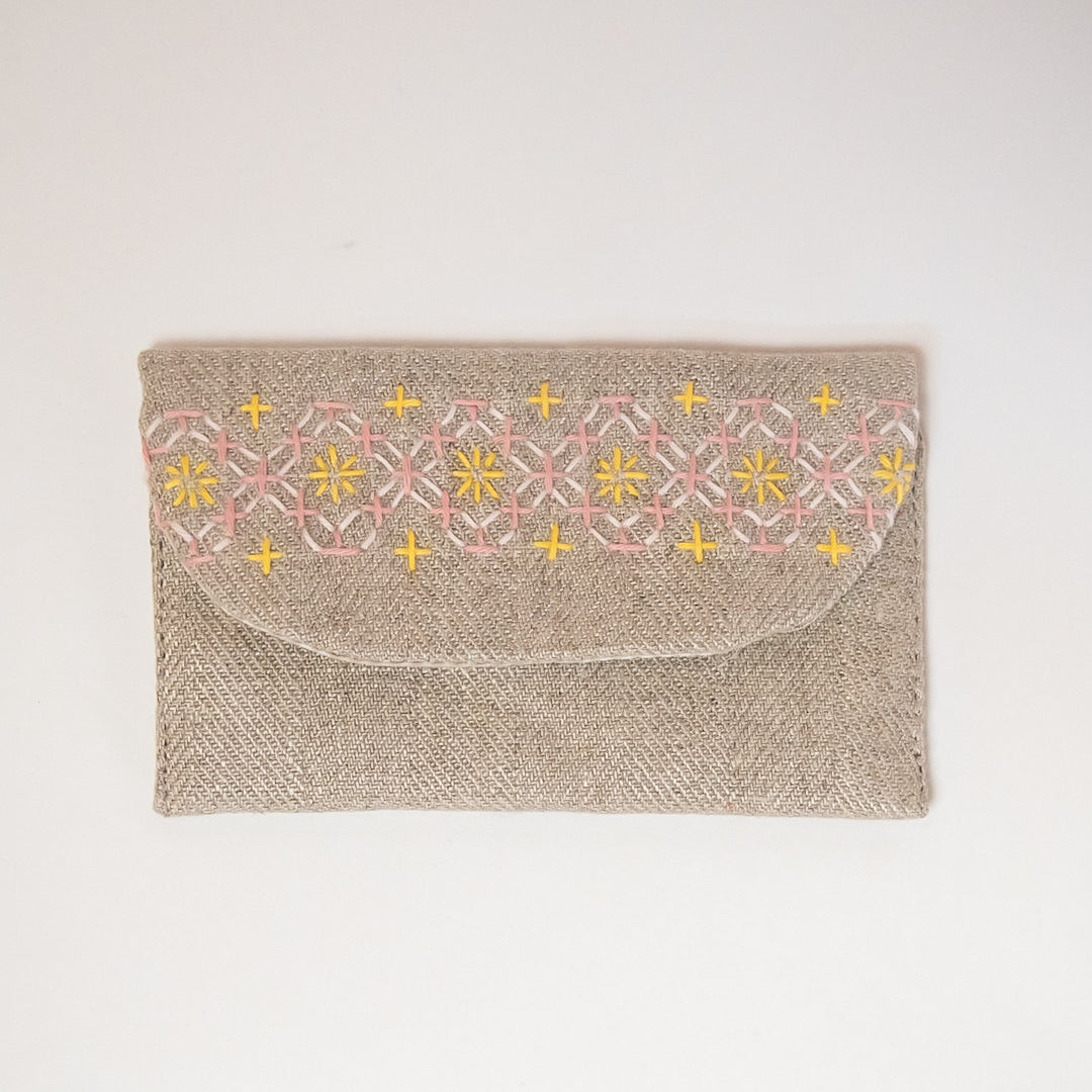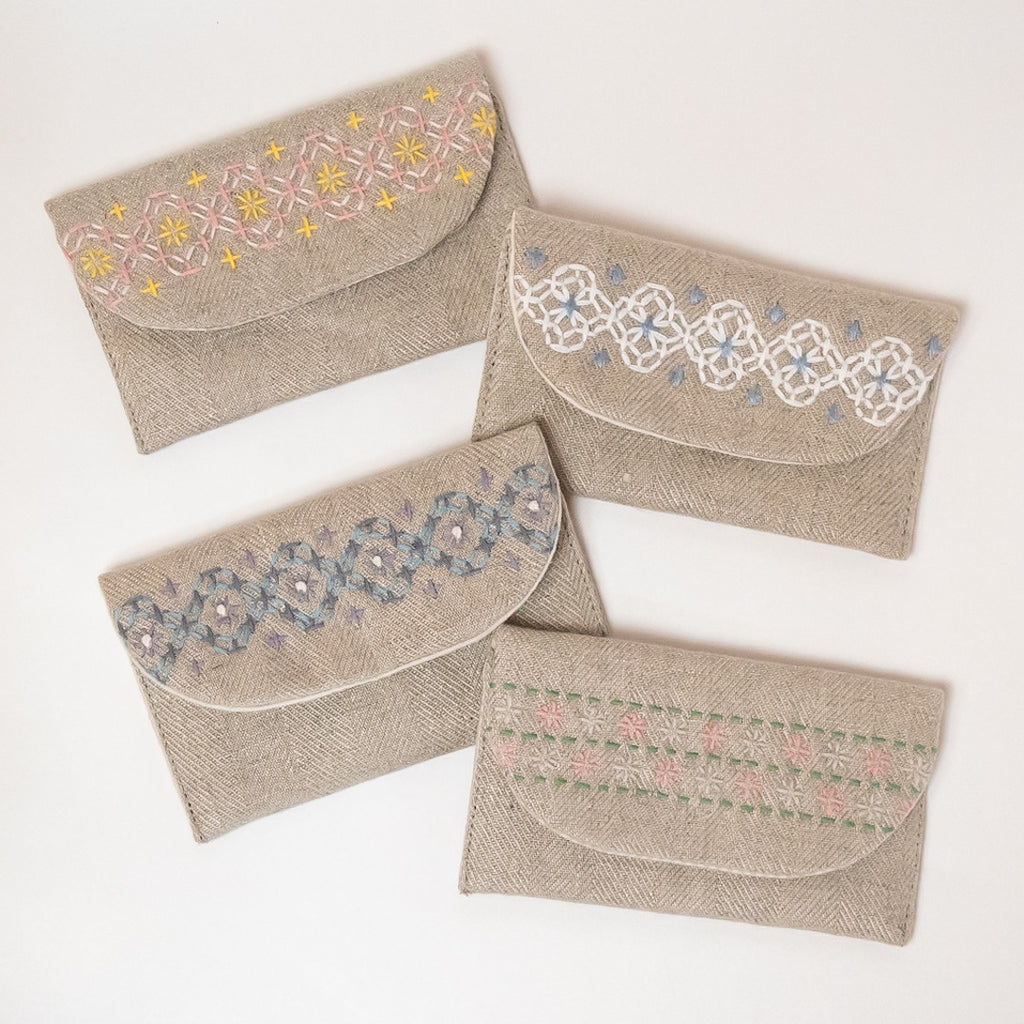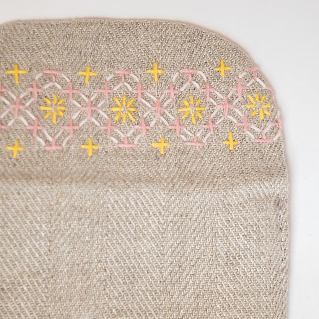 刺し子(刺繍)が施された布生地の名刺入れです。布地らしい柔らかさと暖かさを感じる名痴入れです。