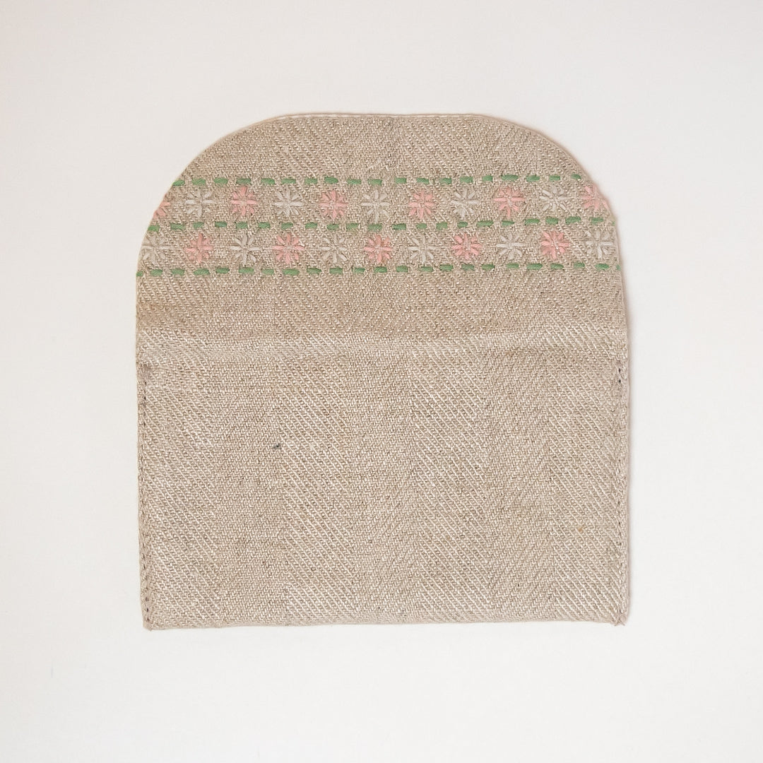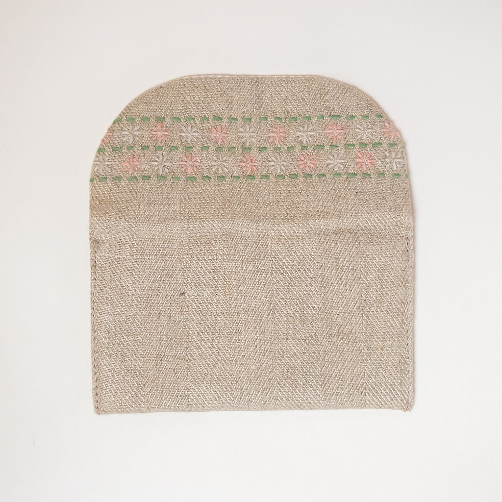 刺し子(刺繍)が施された布生地の名刺入れです。布地らしい柔らかさと暖かさを感じる名痴入れです。