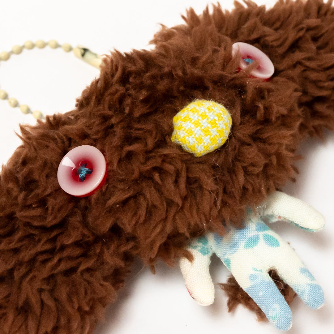 目に使用しているボタンは、フランスのアンティーク物やシェル・ウッドボタン、洋服等についていた可愛いボタン等様々な所よりこだわり集めてきた中からカスタマイズしています。