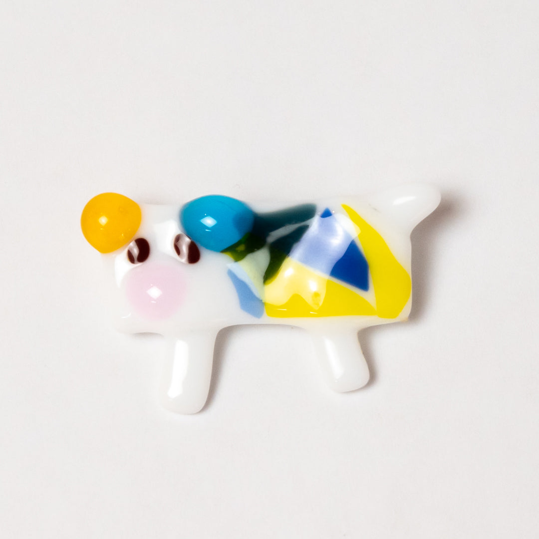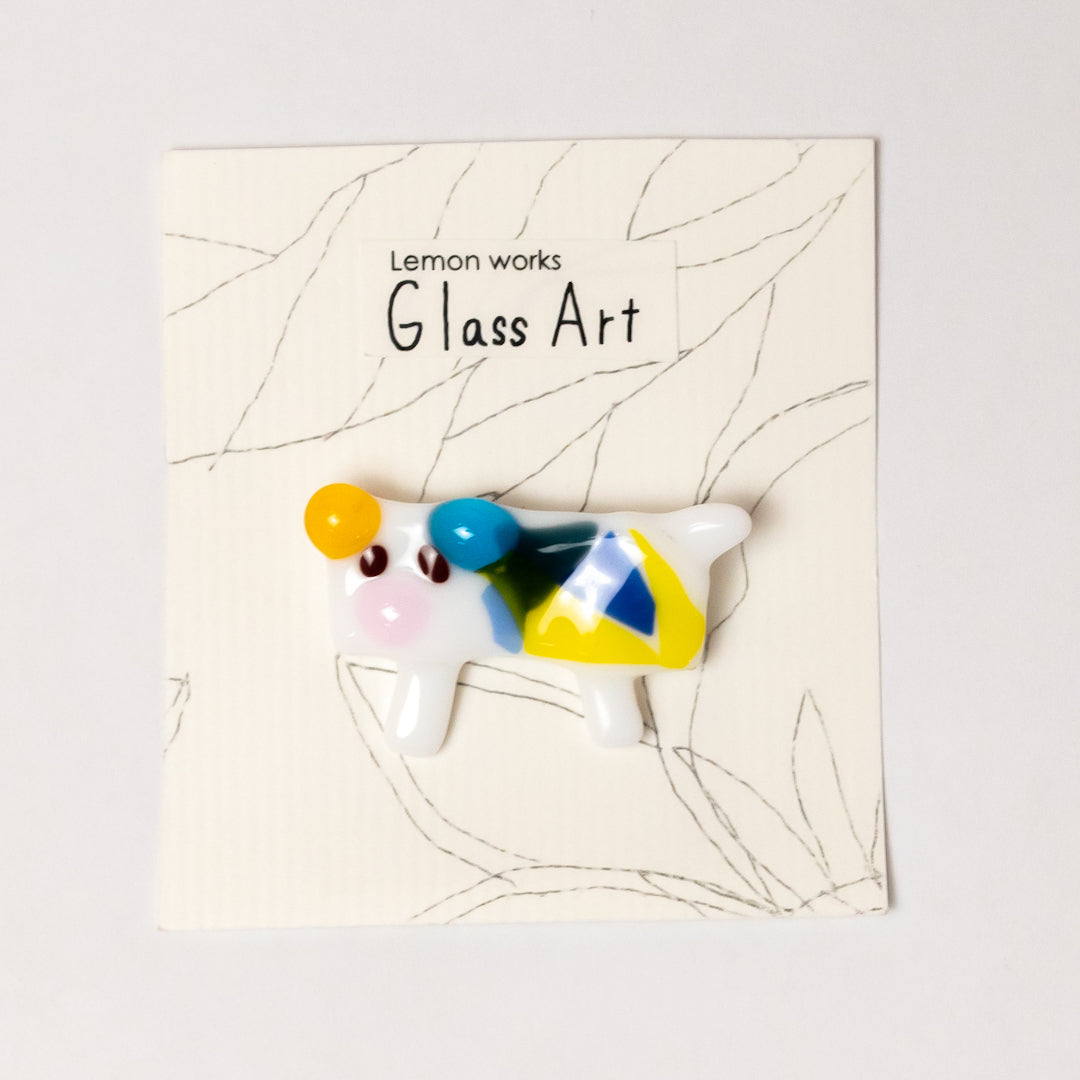 電気炉を用いて板ガラスや棒ガラスを800℃近い温度で焼成し、融着させるフュージング技法を用いています。いろんな色のガラスとの組み合わせによりオリジナリティのある魅力を引き出しています。