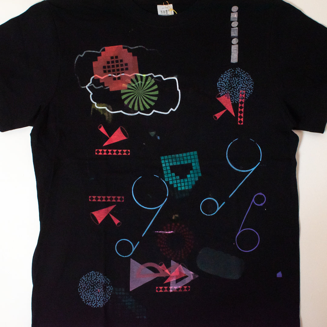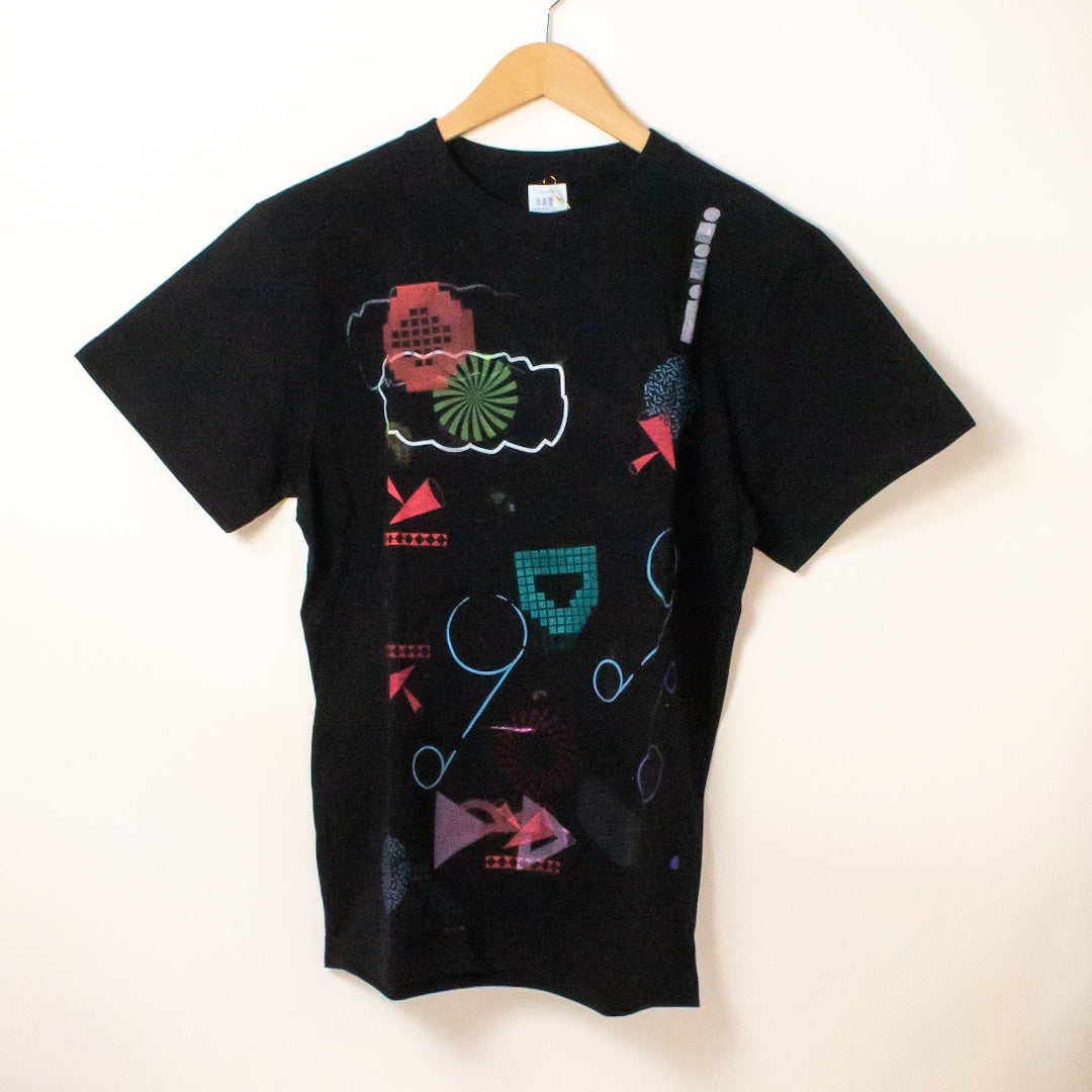 Good Job!センターのメンバーとスタッフが、小さなシルクスクリーンの版とインクの色を選び、机の上に並べられたTシャツや布などの上に自由にプリントをし、それら全てを商品として販売しています。