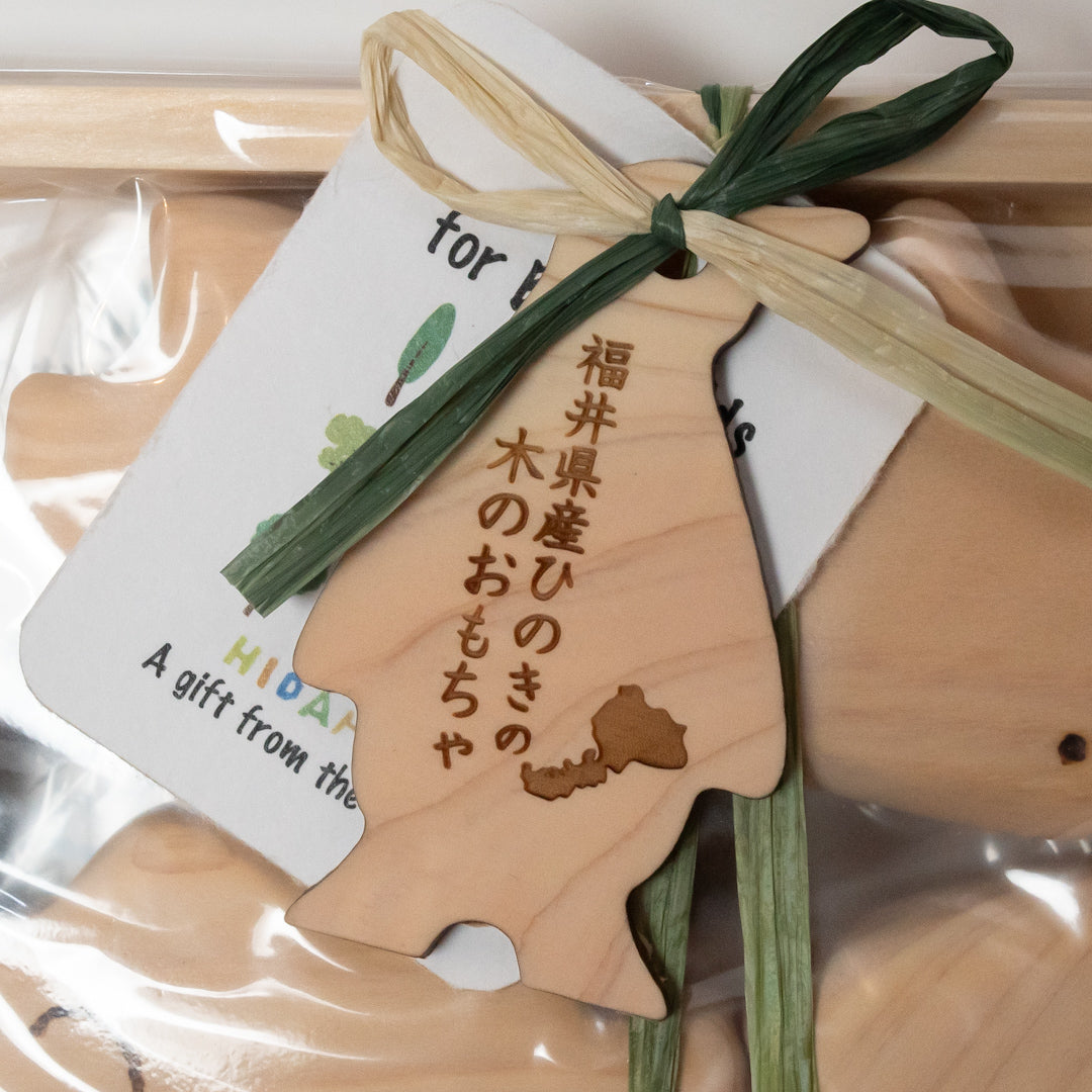 無着色、無塗装なので赤ちゃんの歯がためとしても最適です。裏にはそれぞれ名前がひらがなと英語で書いてあります。