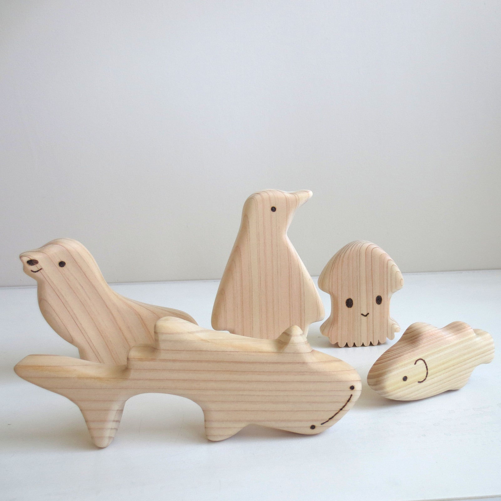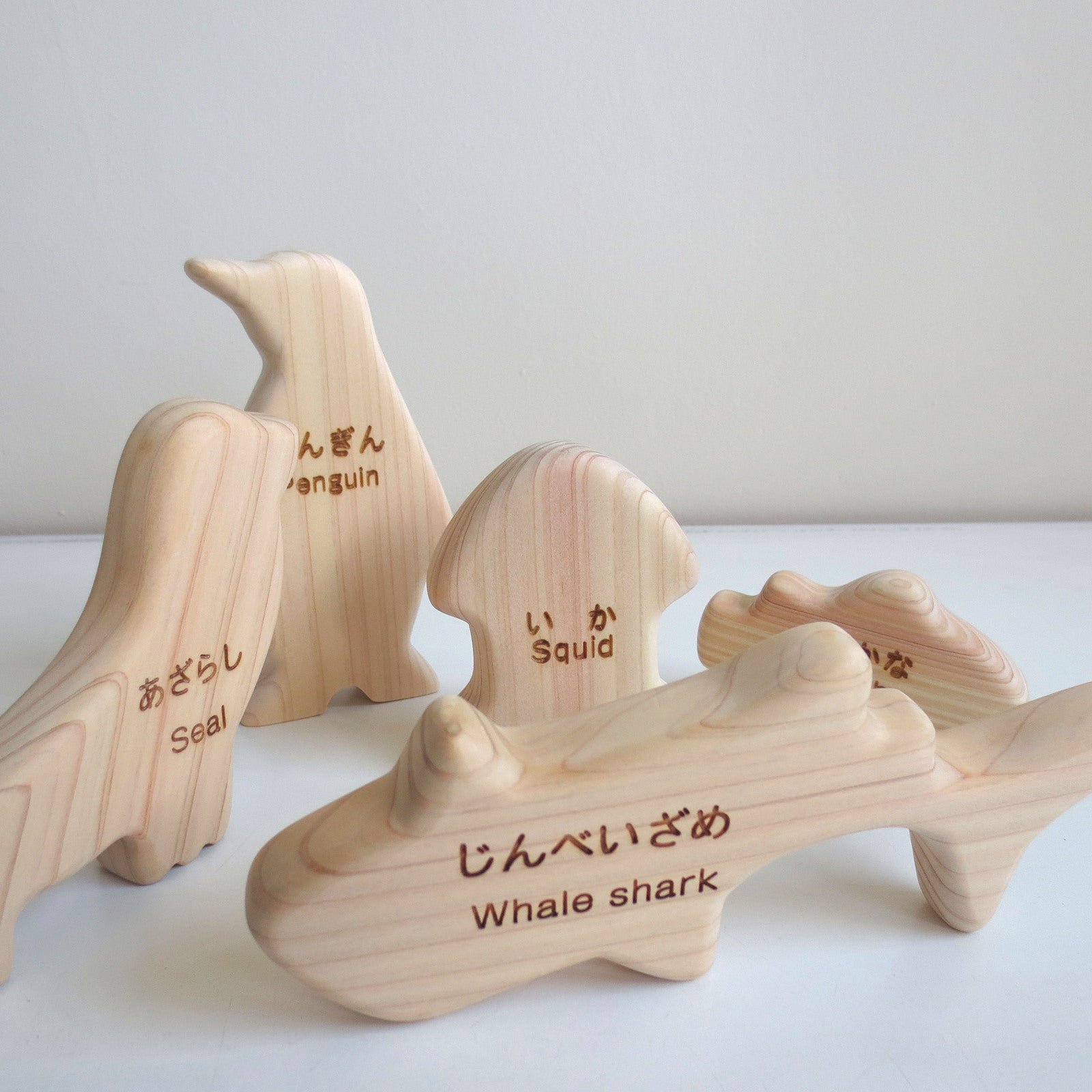 お風呂用のおもちゃです。ぺんぎん、じんべいざめ、あざらし、いか、さかなの5種類入っています。