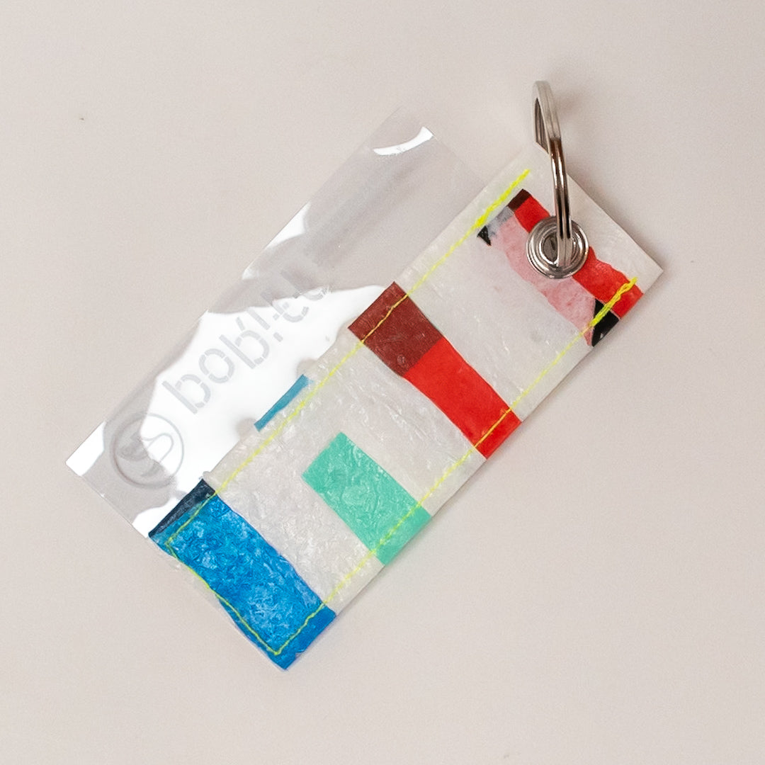 一見捨ててしまうような買い物袋たちをコラージュし、熱で圧着して完成するシートを使用してプロダクトに変えています。