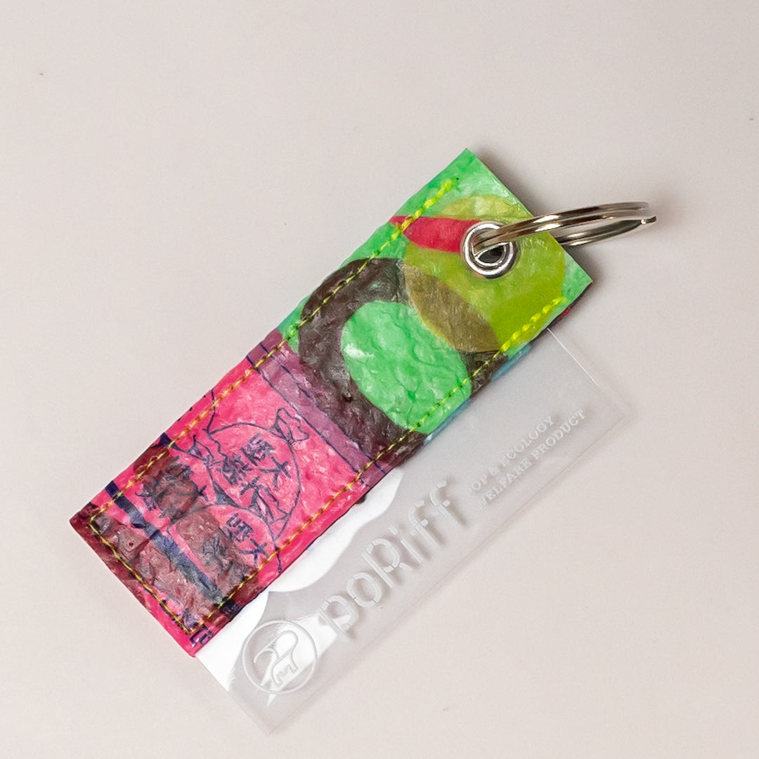 制作は、岸和田・就労継続支援B型事業所オーロラと、東大阪・活動センターいっぽのふたつの福祉施設で、買い物袋のカットからミシンによる縫製まで、すべて障がいのあるひとの仕事として行われています。poRiffは、そのひとがそのひとらしく働きがいや幸せを感じられる仕事のスタイルを提案します。そして、手にとってくれた人が純粋に、「いいな」と思える商品づくりを目指しています。