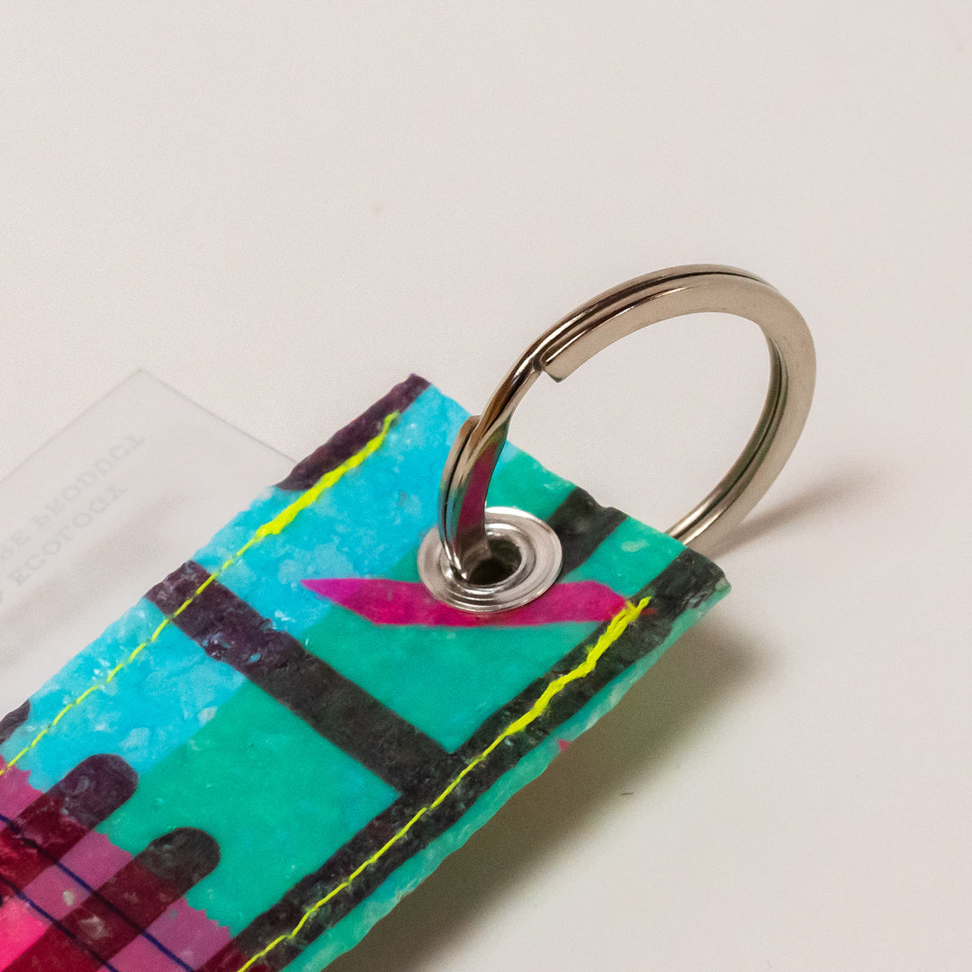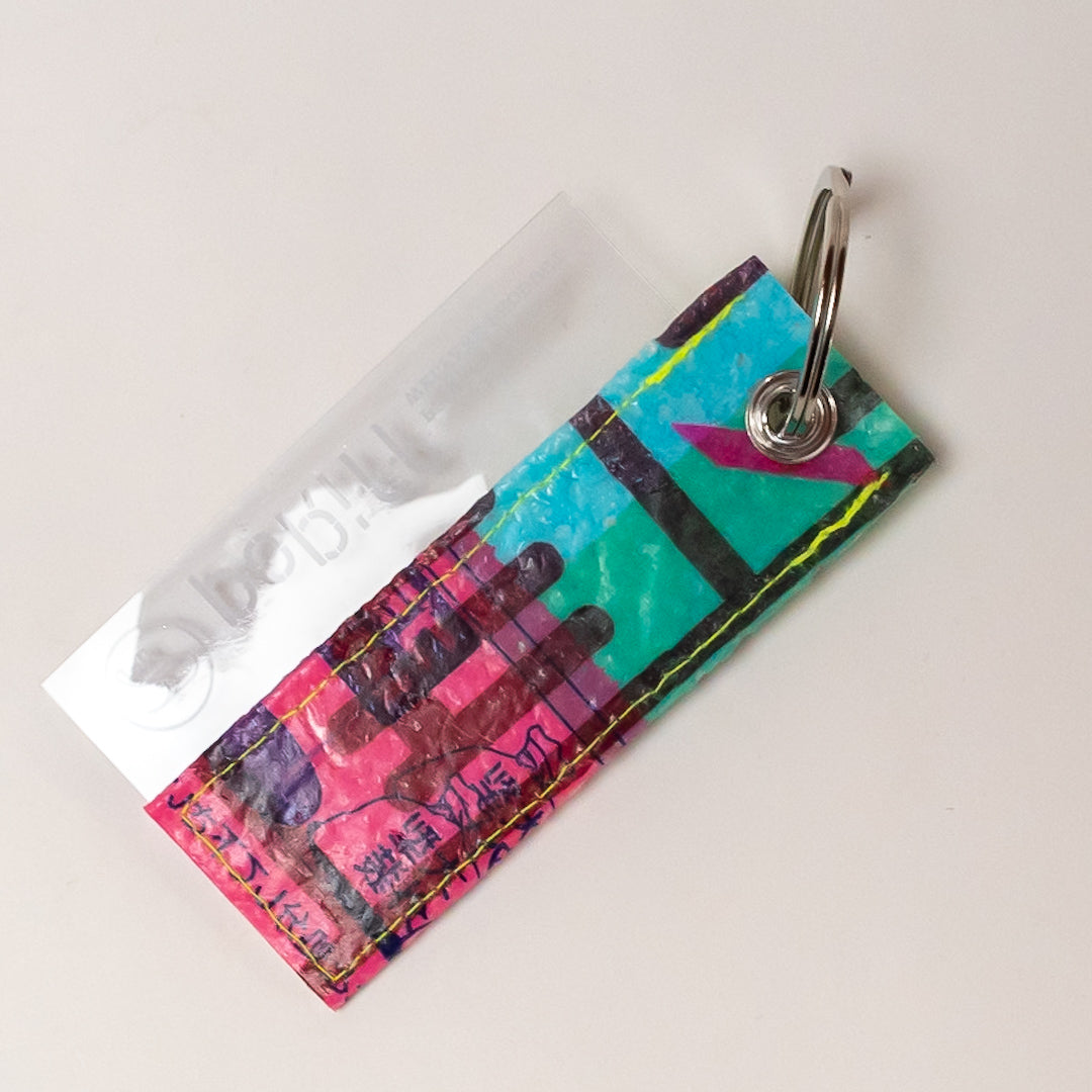 一見捨ててしまうような買い物袋たちをコラージュし、熱で圧着して完成するシートを使用してプロダクトに変えています。