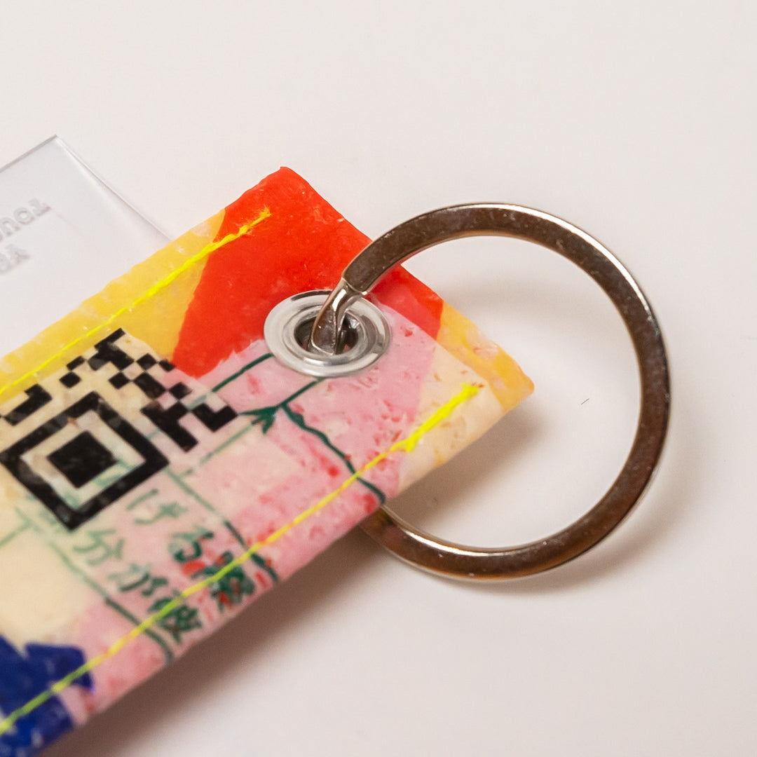 一見捨ててしまうような買い物袋たちをコラージュし、熱で圧着して完成するシートを使用してプロダクトに変えています。