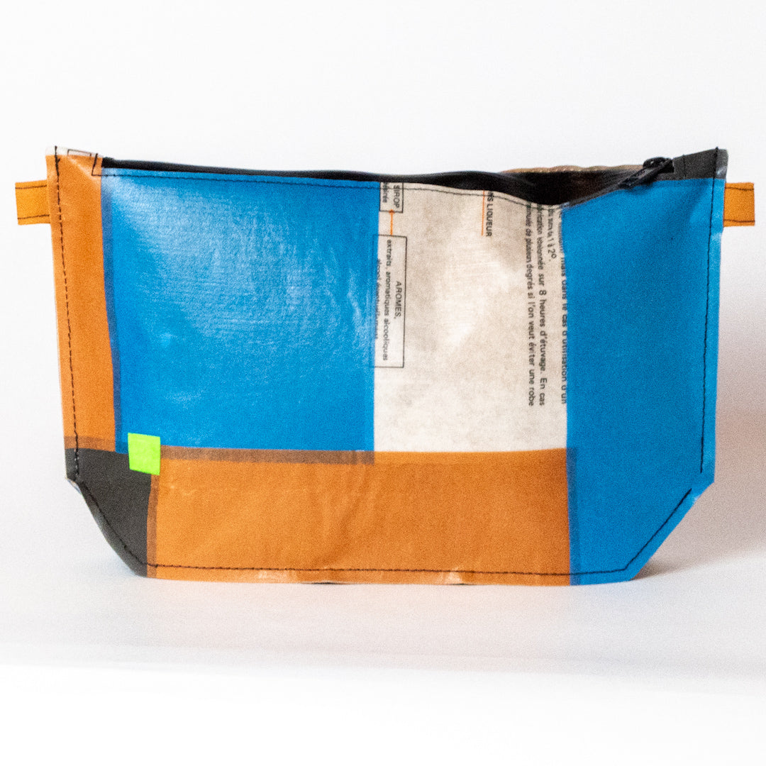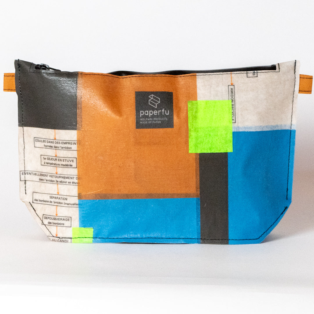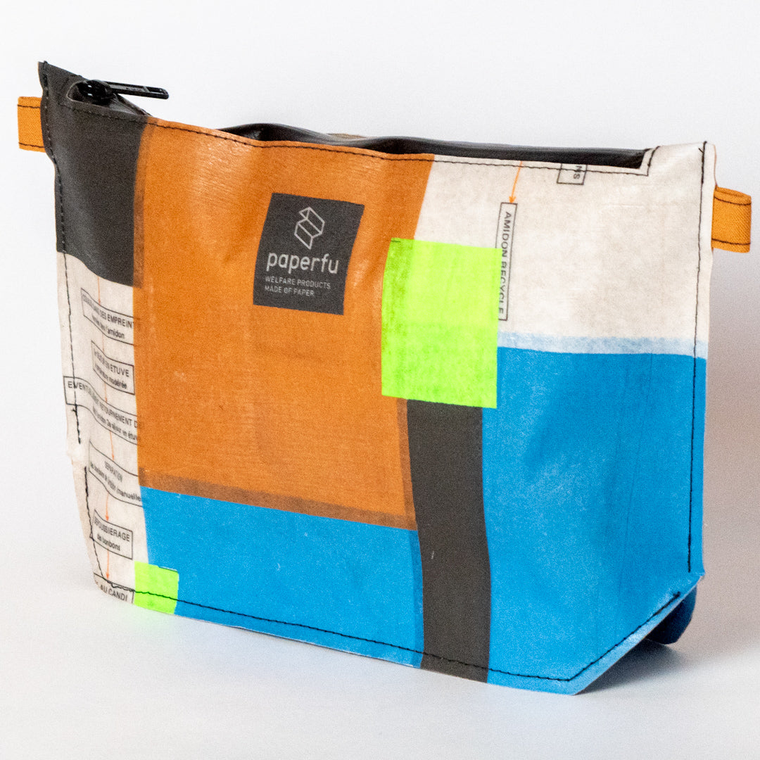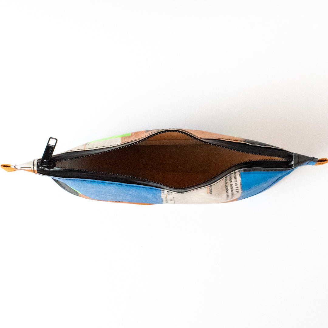 自由にコラージュし特殊な溶液に浸した紙を基につくられたポーチです。