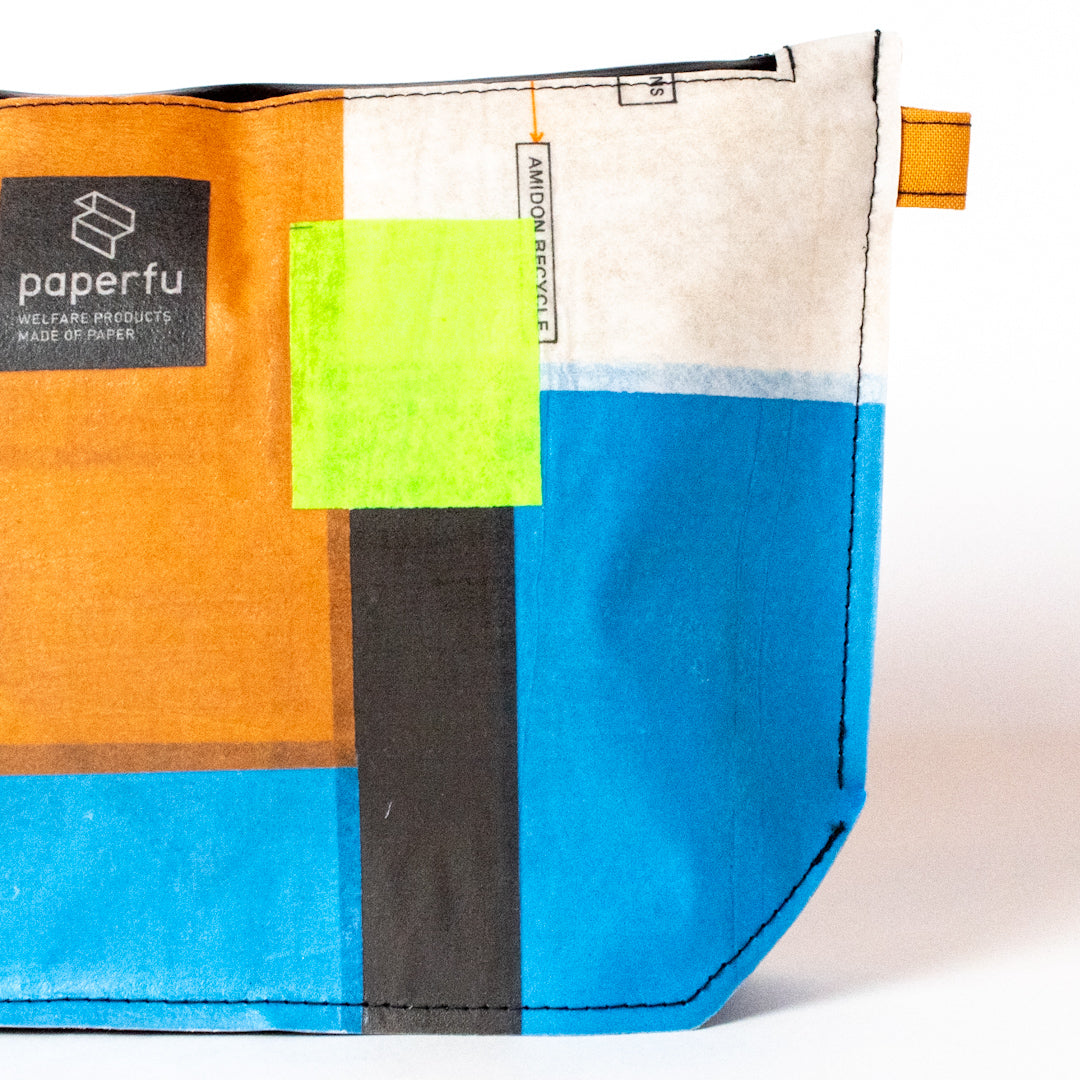 紙の持つ特性を生かし、使うほどに表情の変化を楽しむプロダクトです。紙の質感を活かしながらも、紙以上に耐久性のある素材を目指しています。そのために裏地として古布を使用しています。