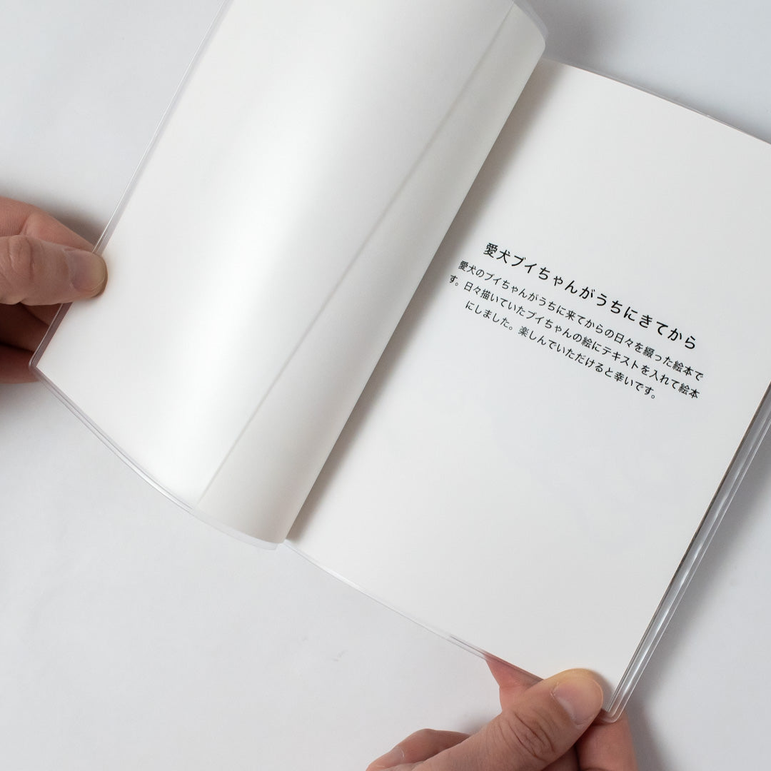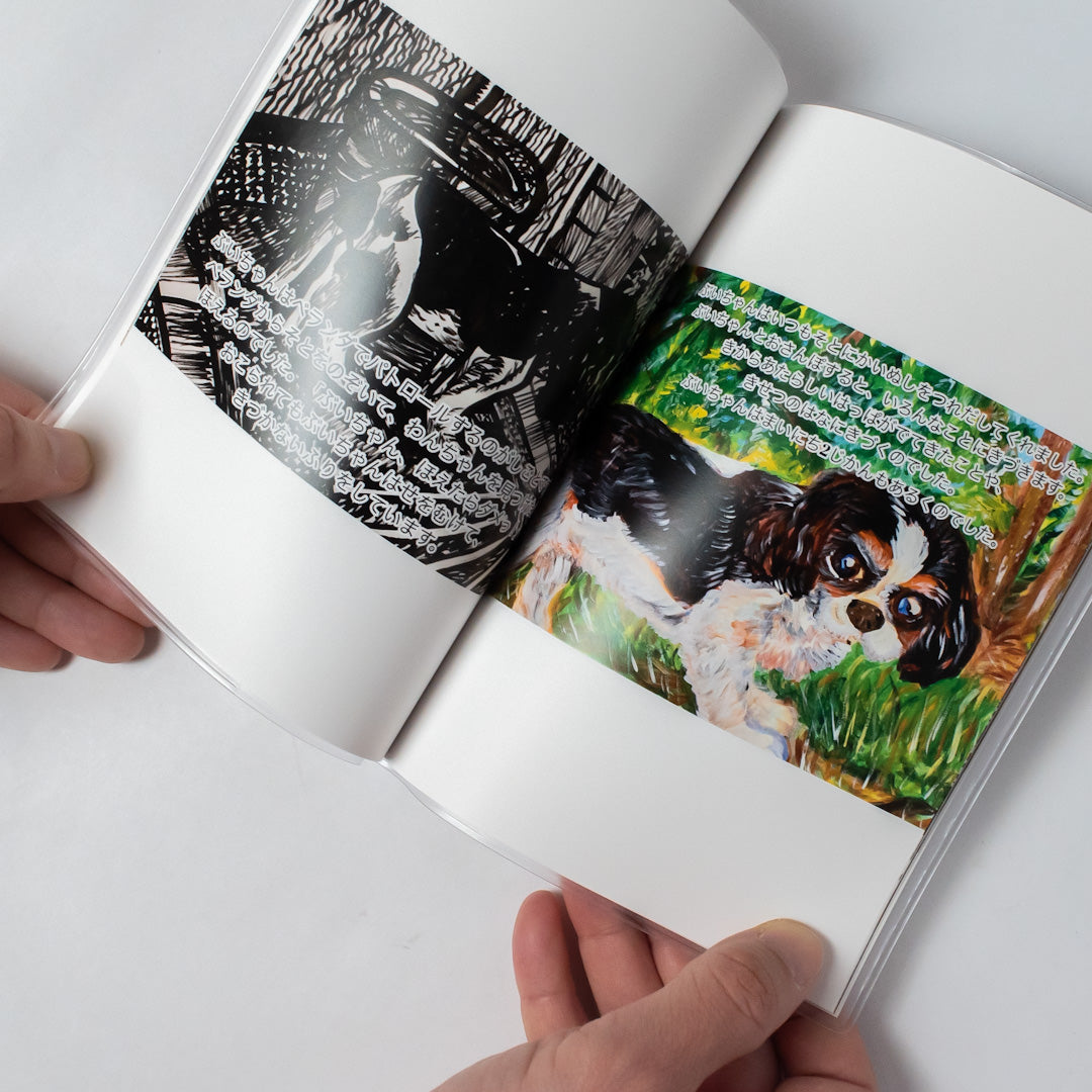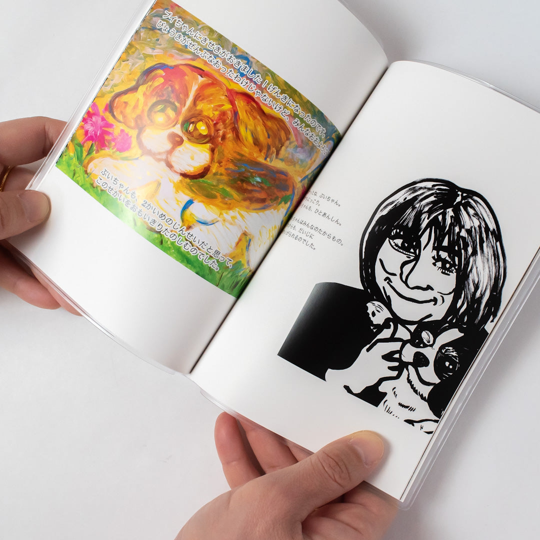 【サイズ】縦18cm×横13cm【素材】紙にアクリル絵の具や墨汁で描いた絵を印刷(24ページ)【作家・作品タイトル】天極ララ「愛犬ブイちゃんがうちにきてから」【製造】日本製