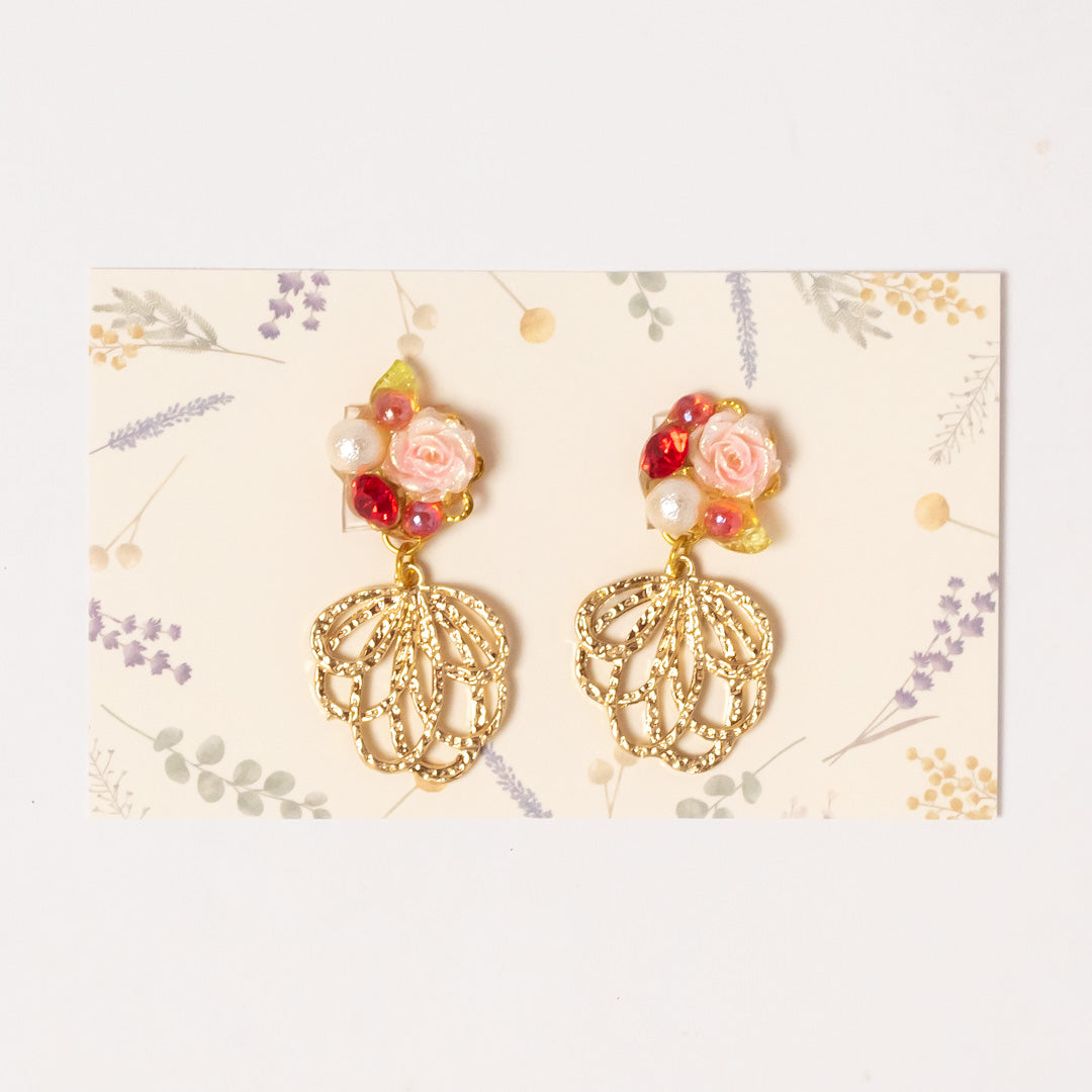 いろいろなパーツを組み合わせて製作した一点モノの貼るピアスです。一点一点丁寧に作っています。貼るピアスですので、ピアスホールがない方や、お子様にも使っていただけます。替えシール3セット付きです。
