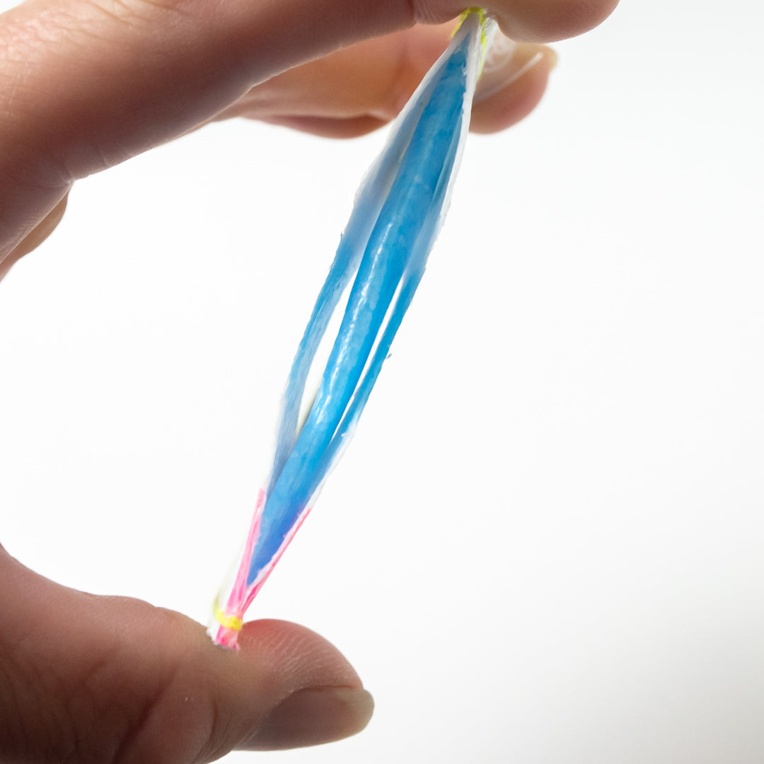 一見捨ててしまうような買い物袋たちをコラージュし、熱で圧着して完成するシートを使用してプロダクトに変えています。