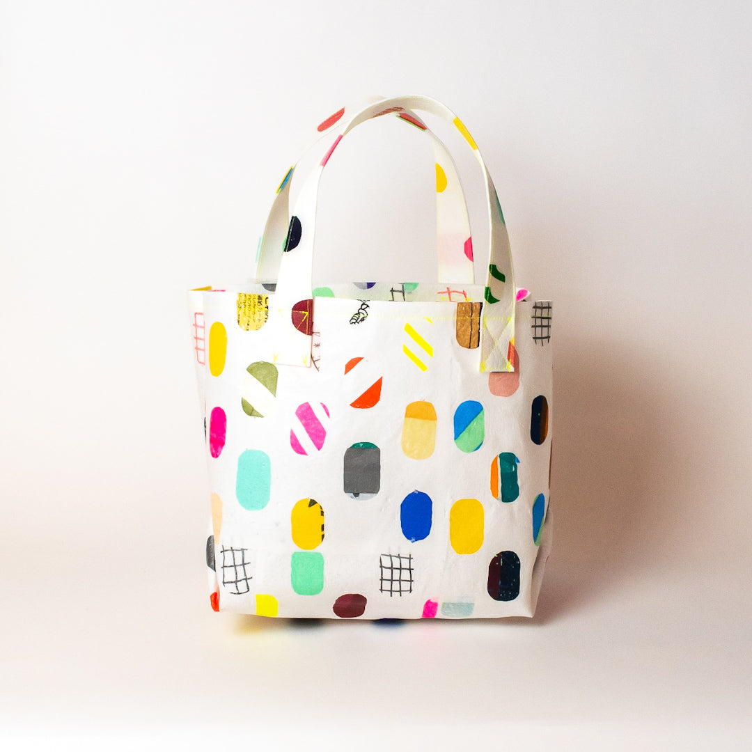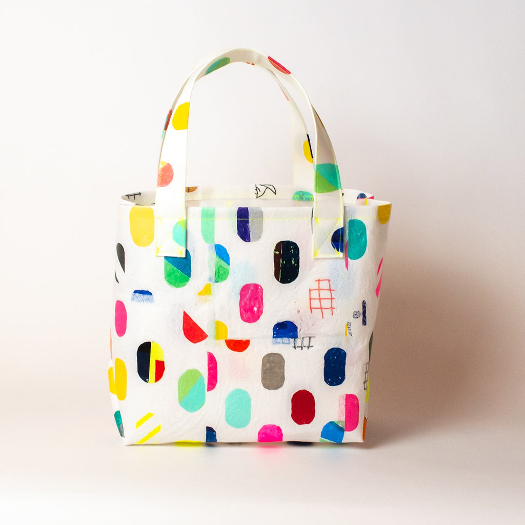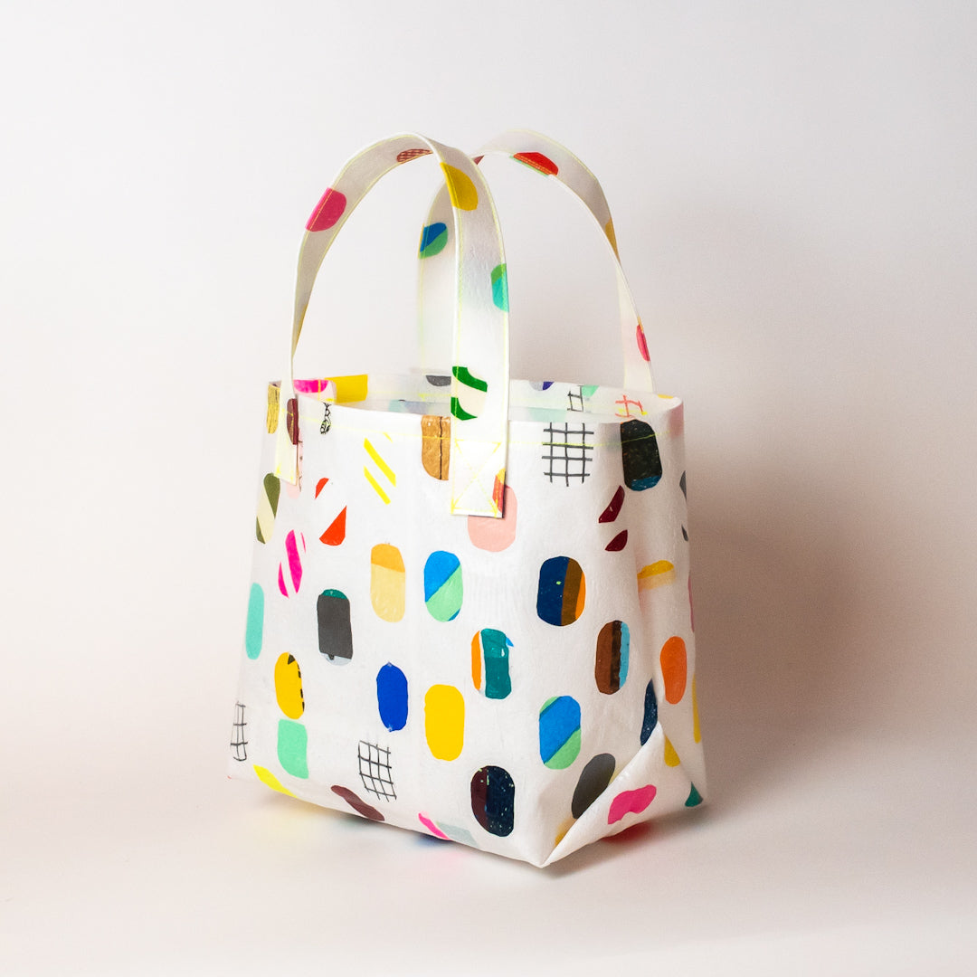 制作は、岸和田・就労継続支援B型事業所オーロラと、東大阪・活動センターいっぽのふたつの福祉施設で、買い物袋のカットからミシンによる縫製まで、すべて障がいのあるひとの仕事として行われています。poRiffは、そのひとがそのひとらしく働きがいや幸せを感じられる仕事のスタイルを提案します。そして、手にとってくれた人が純粋に、「いいな」と思える商品づくりを目指しています。