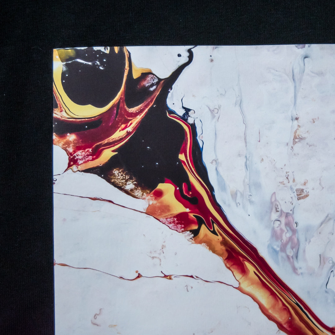 履き心地や素材感にこだわった上品なTシャツに「明亮 -AkiRA」がデザインしたイラストを配置しました。 彼はデザインのコア(核)として、観た人の心の居場所となり、込められた哲学で夢に向かう勇気を与えられるような作品を描き続けることを目標にしています。
