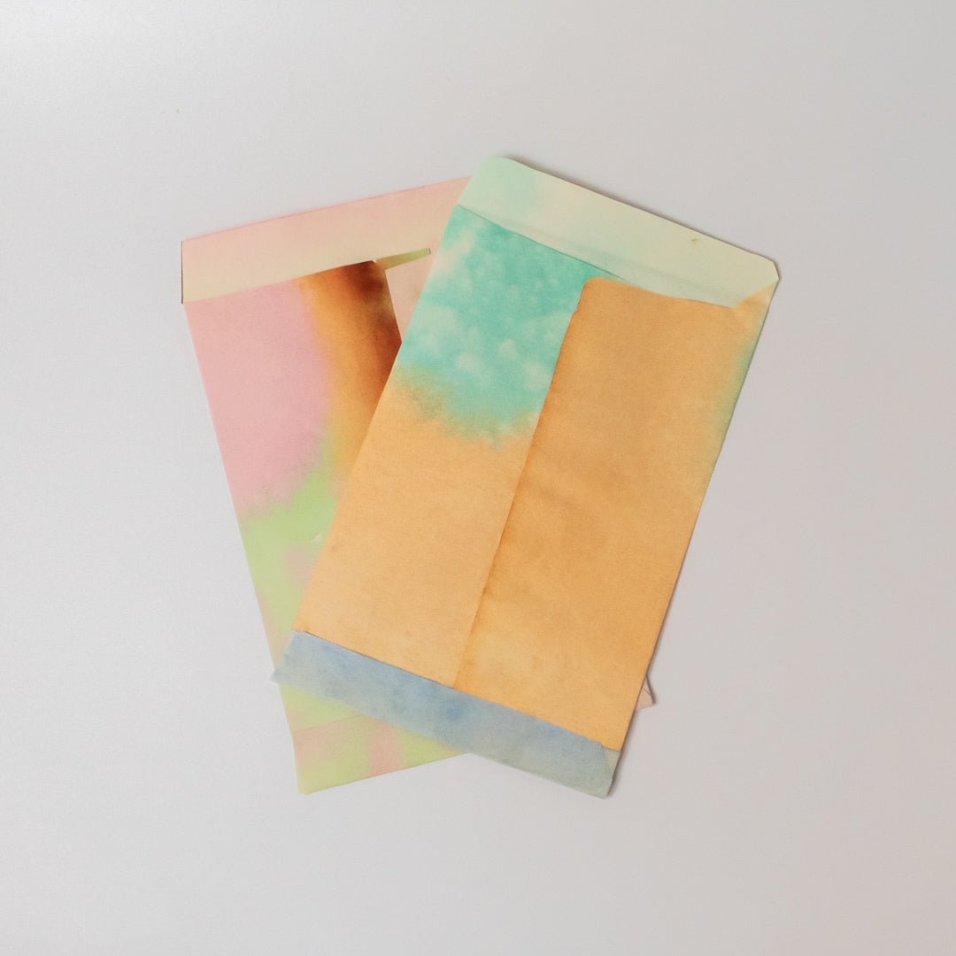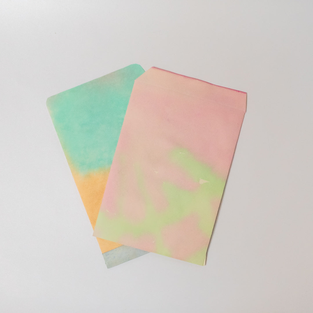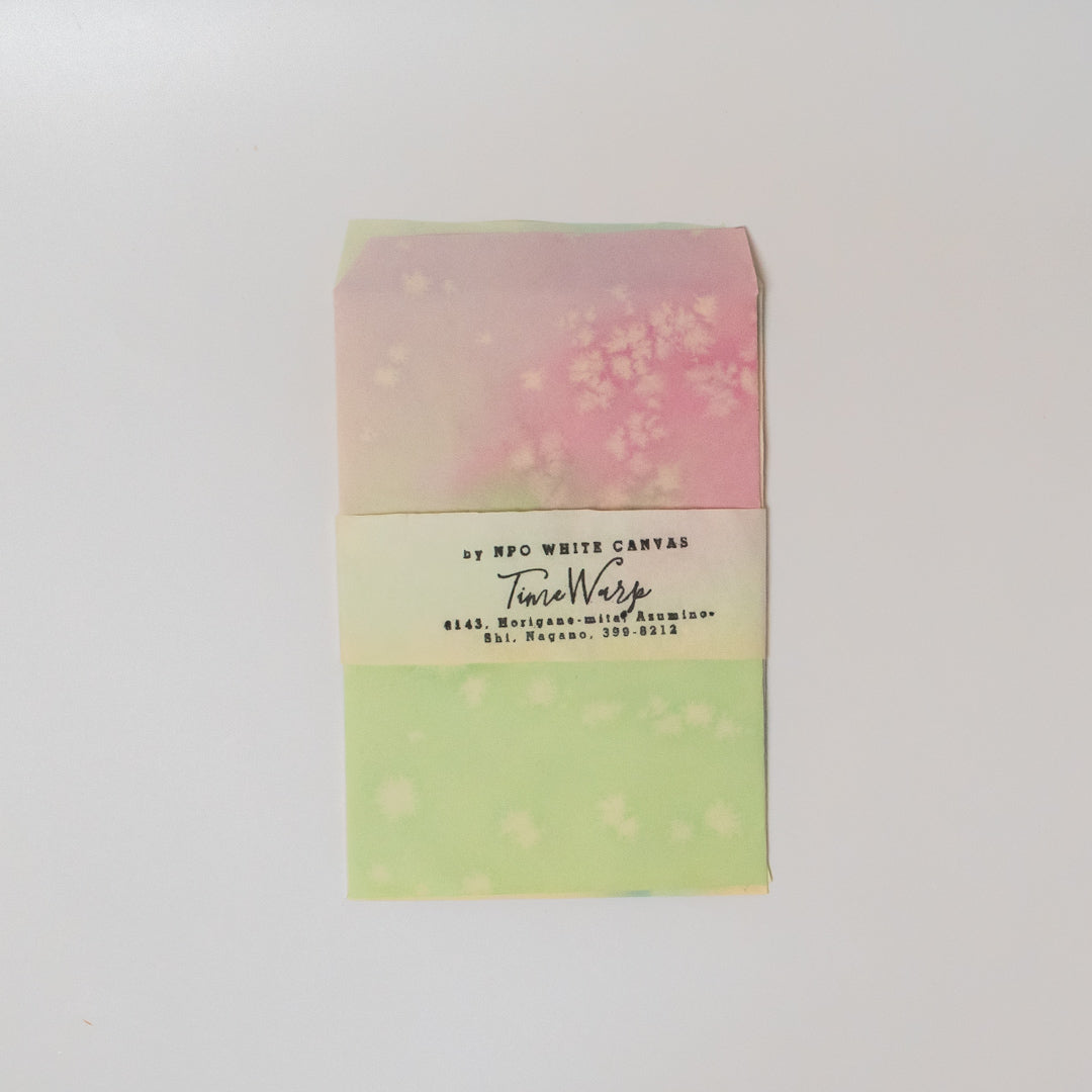 ステンドグラスのように鮮やかで透明感ある封筒で、とても手が込んだ一点ものです。