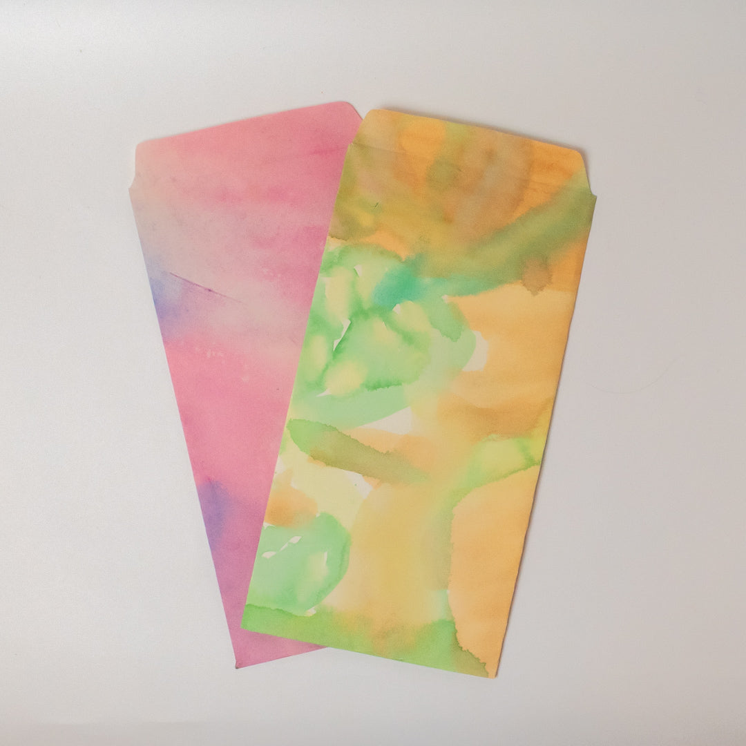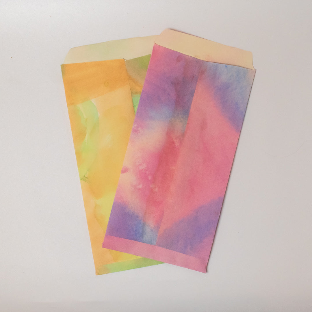 ステンドグラスのように鮮やかで透明感ある封筒で、とても手が込んだ一点ものです。