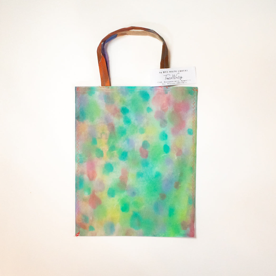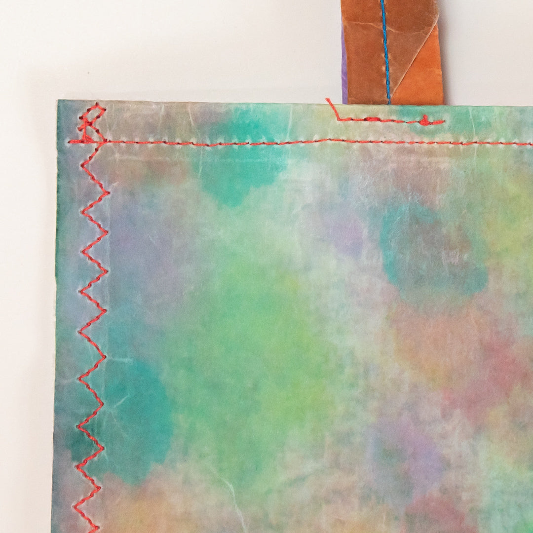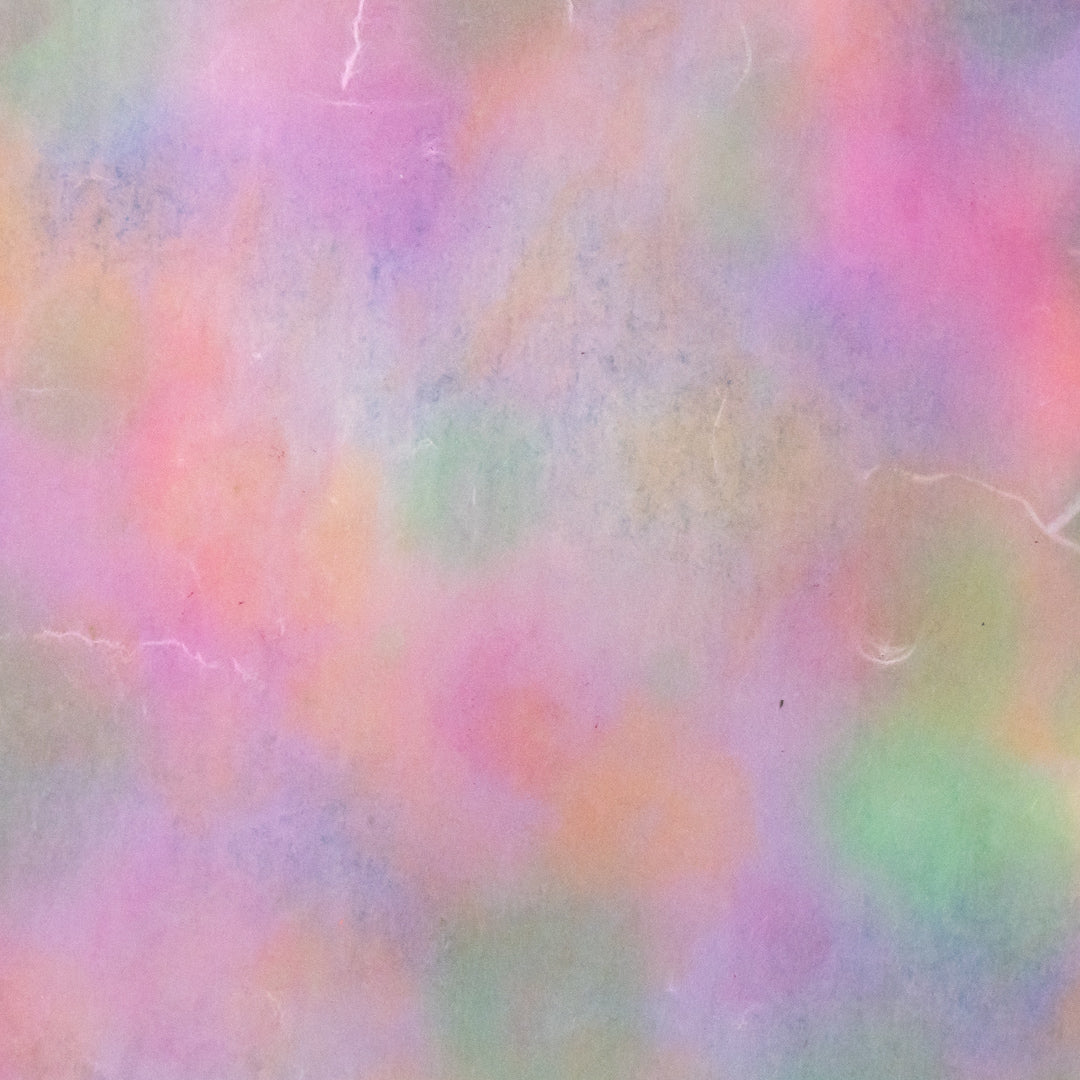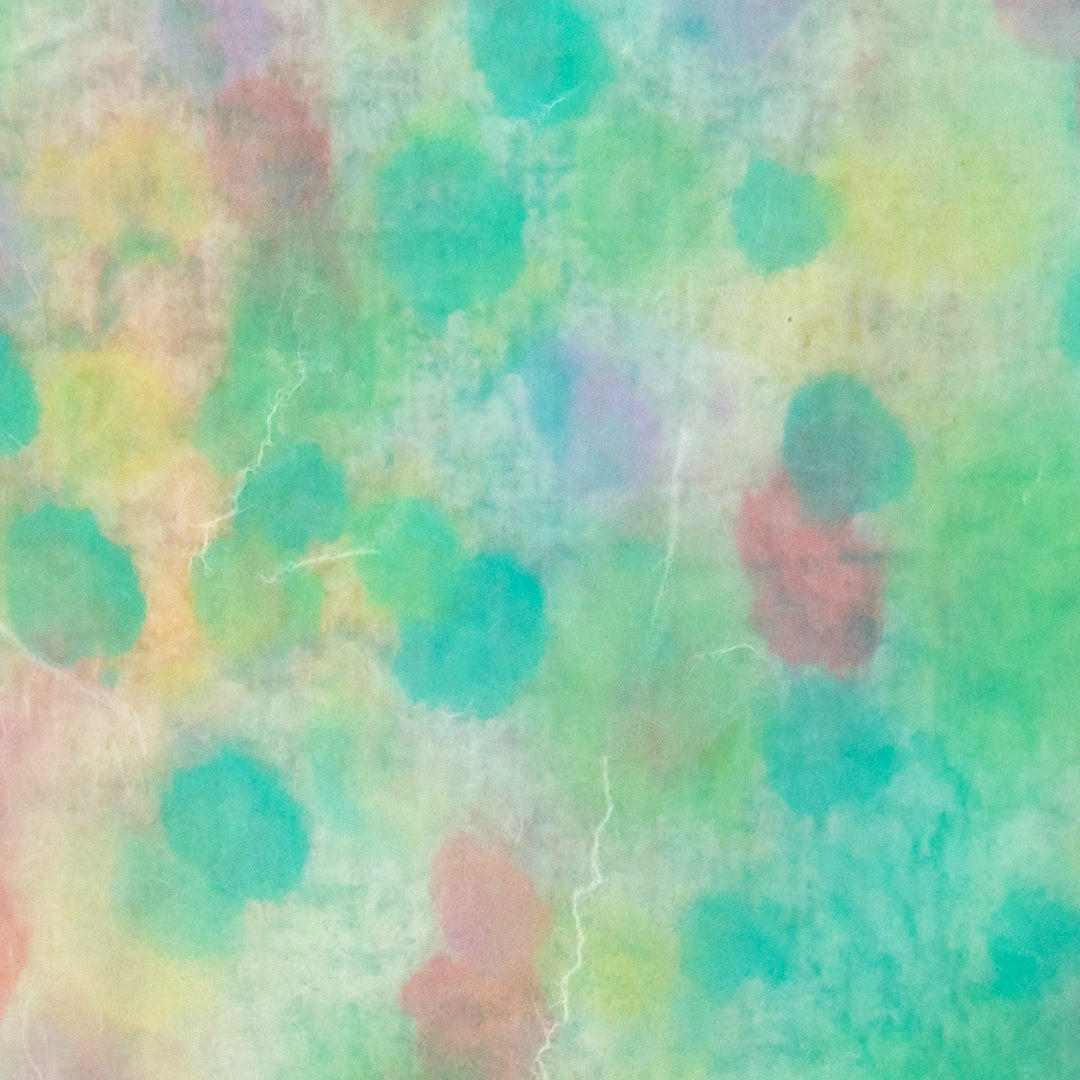 障子紙に水彩でにじみ絵を描いた色鮮やかな素材をろうびきした