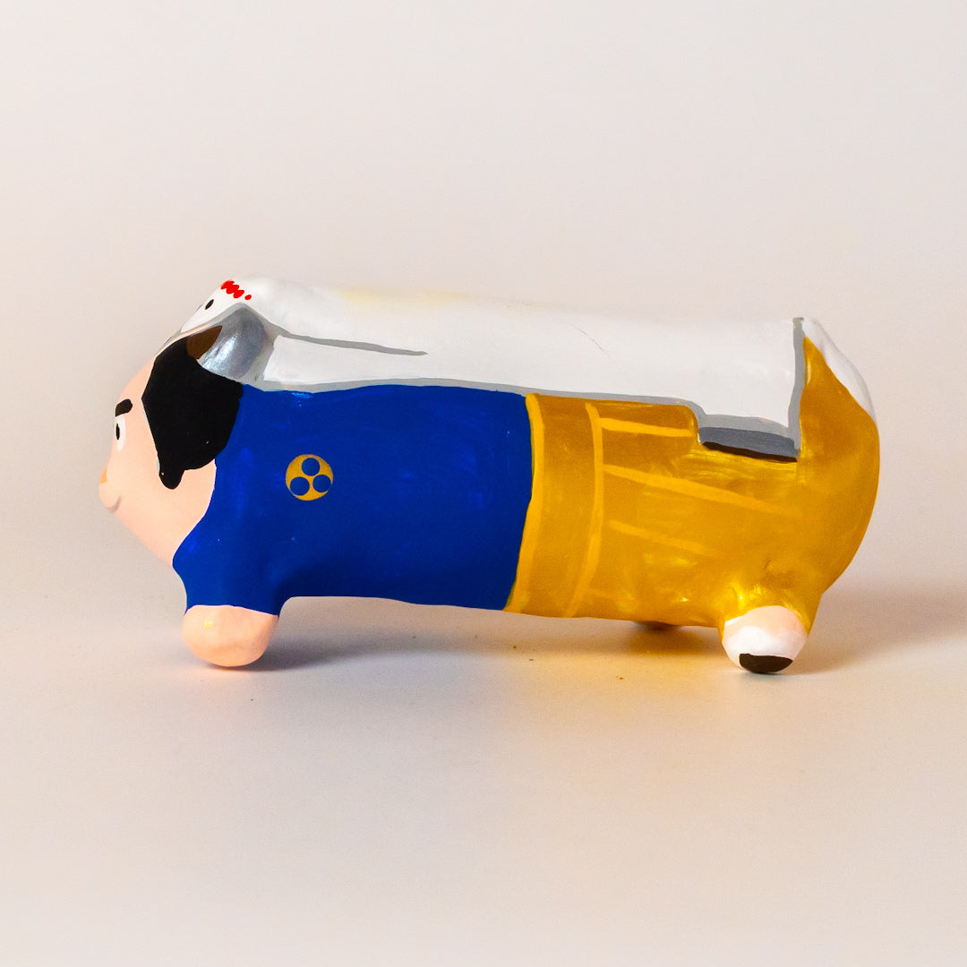 この干支飾りは、障害のある人の新しい仕事を生み出す拠点「Good Job!センター香芝」のホットドッグ型のオリジナルマスコット「Good Dog」のスピンオフ商品として誕生した午年の張り子です。