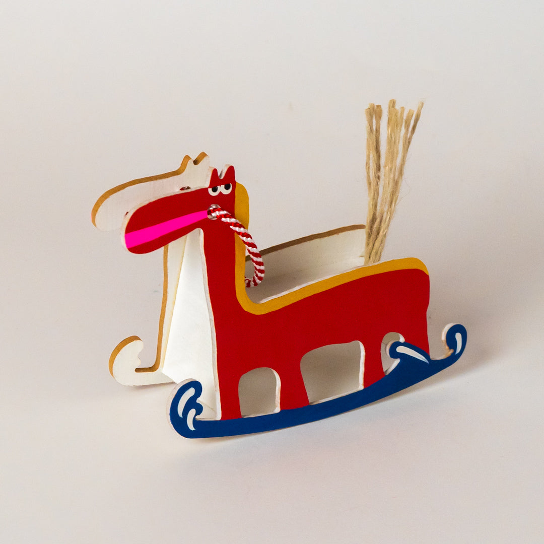 GoodJob!センター香芝では、初めて木製の干支飾りに挑戦しました。馬は古来より生命力を象徴し、繁栄を招く存在だといわれています。あどけない表情を浮かべ、荒波にのって揺れ動く馬の姿には、困難に直面してもうまくいくというメッセージを込めています。