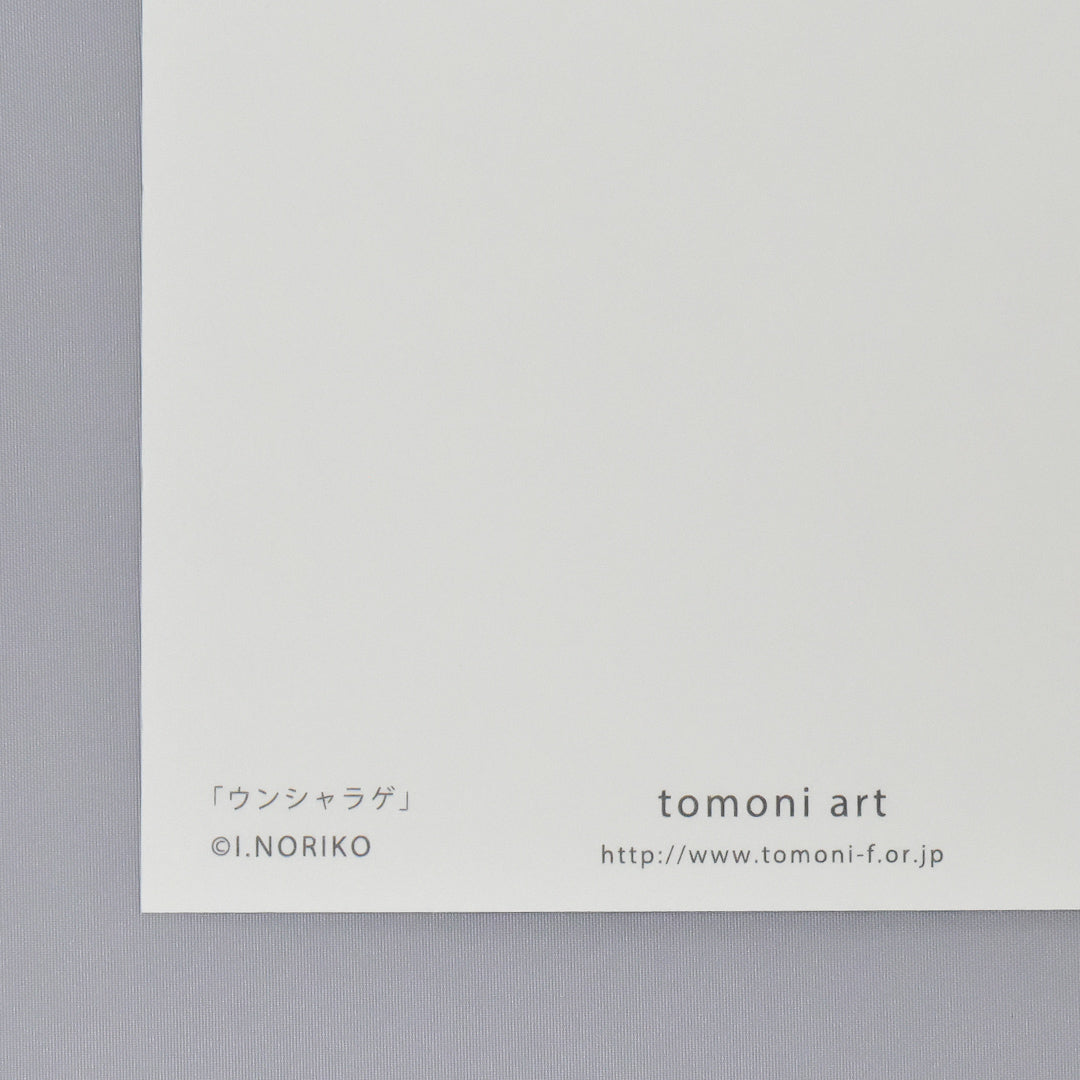 I.NORIKOの「ウンシャラゲ」のイラストをデザインしたポストカードです。