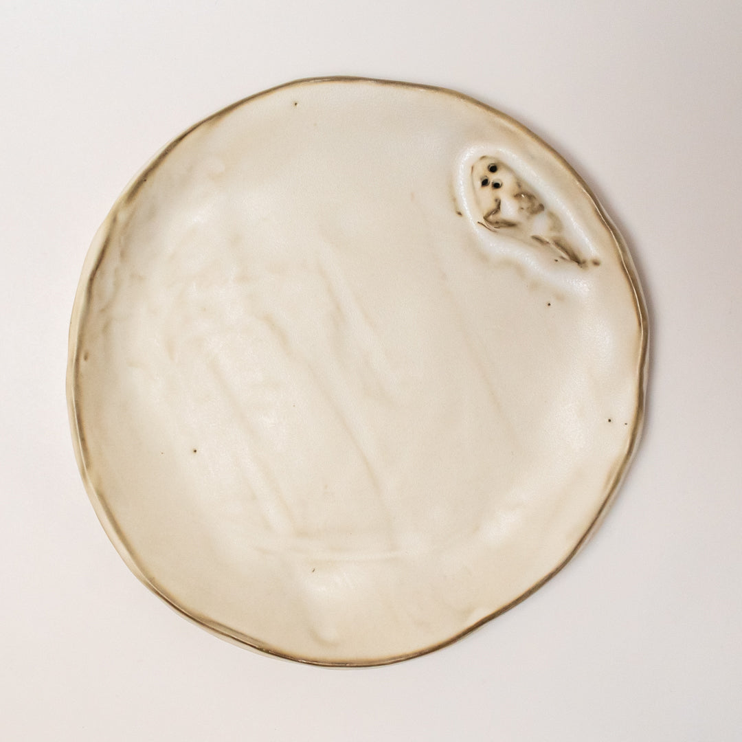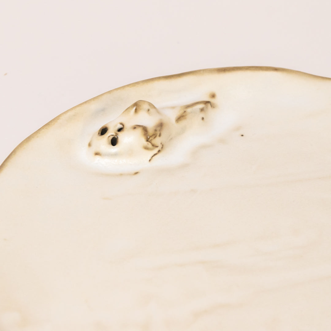 おばけの浮き彫りがワンポイントの皿です。(ひとつひとつ手作りの為、多少、形状や大きさ、模様に差異があります。)