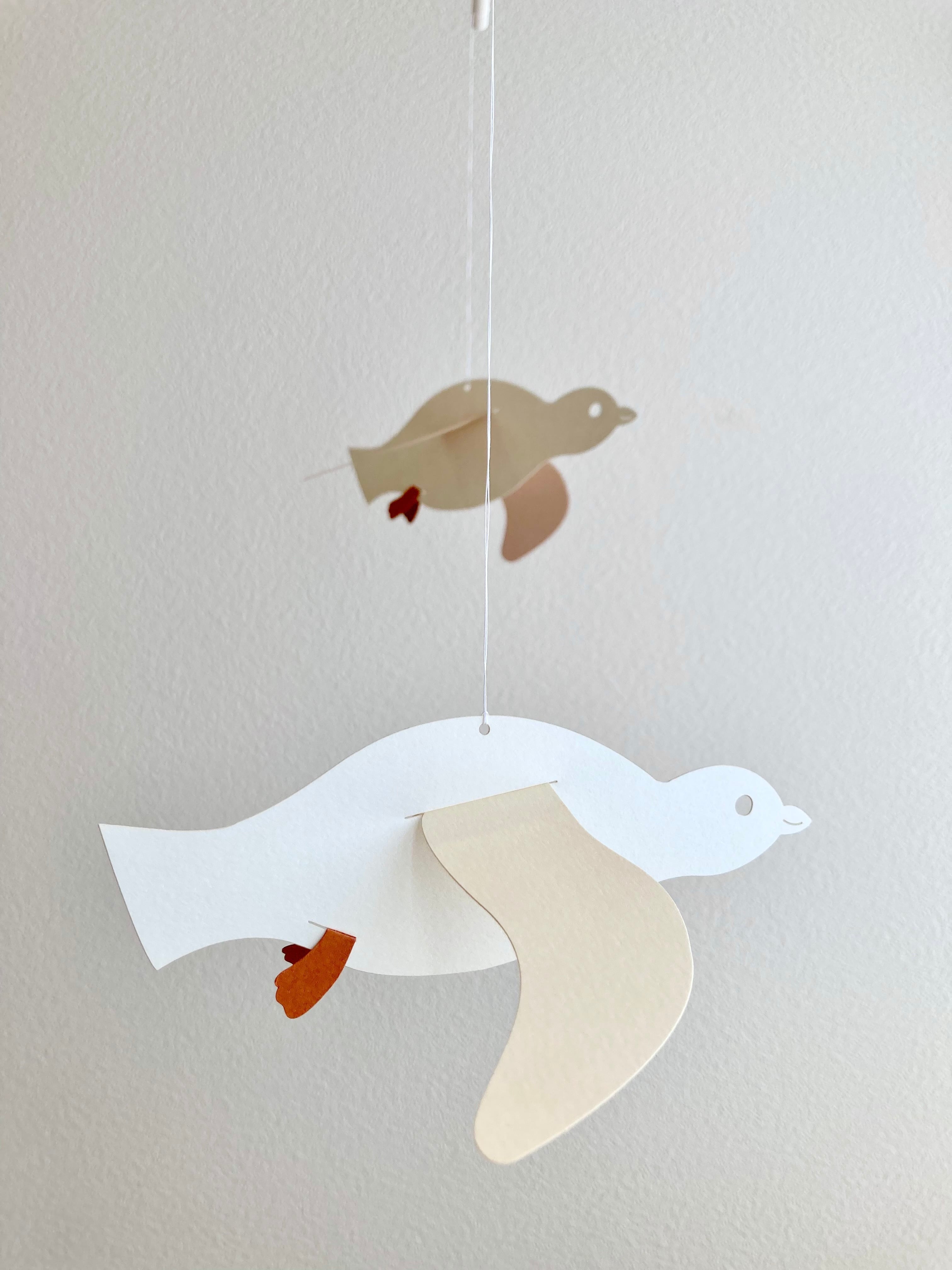 ほっこり癒される3羽のかもめのペーパーモビール。
