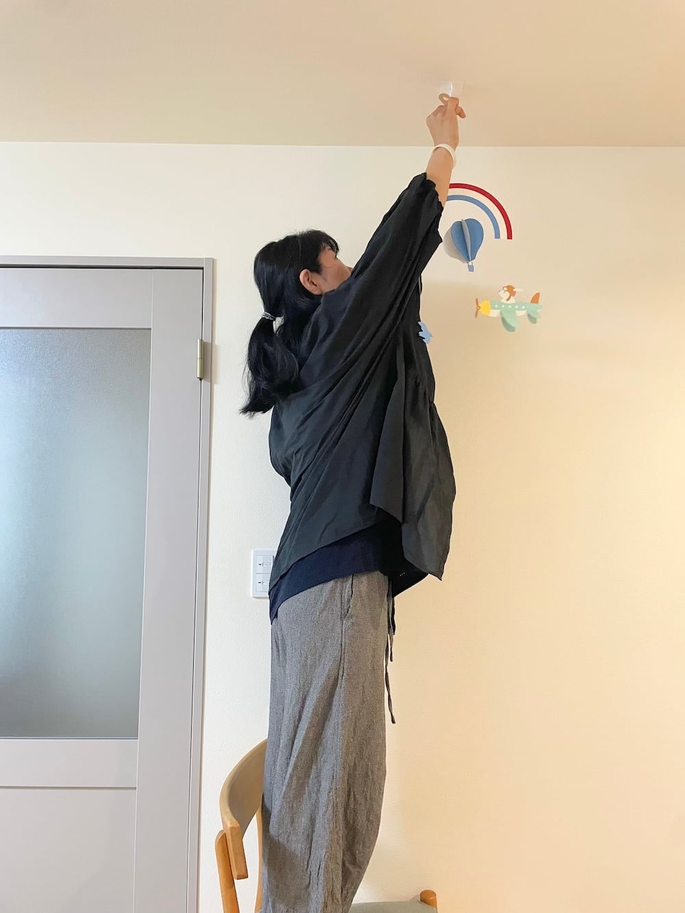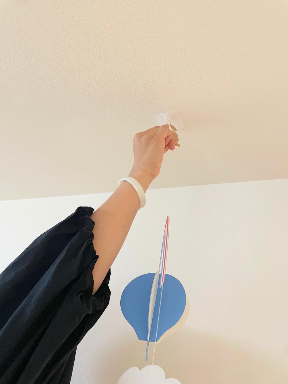 ご家庭でも紙製のモビールを簡単に取り付けることができます。