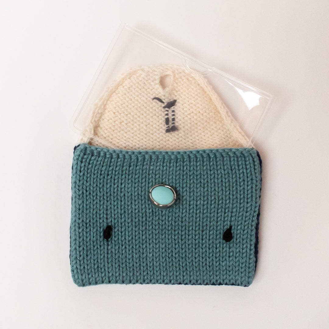 カードケースというと、一般的にはハードなプラスチックや金属などで作られた物が多いですが、こういうニット製のカードケースはいかがでしょうか?ひっくり返すとクマさんに見えます。温かさと共にどこか、柔らかさを感じる手触りとデザインをどうぞ。