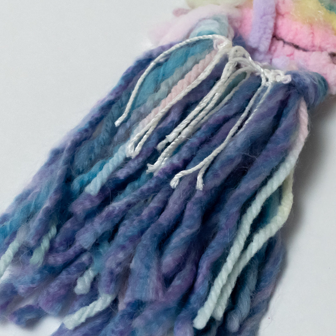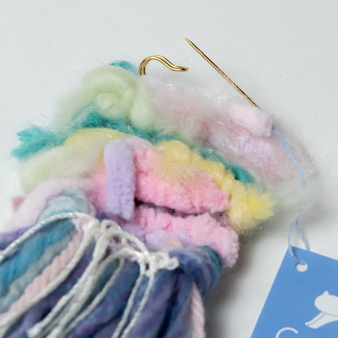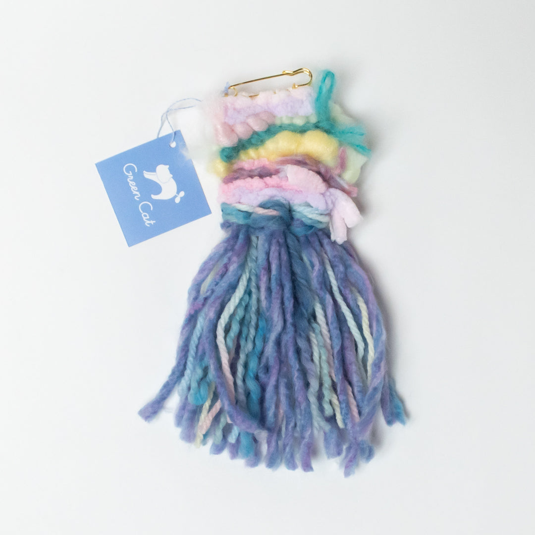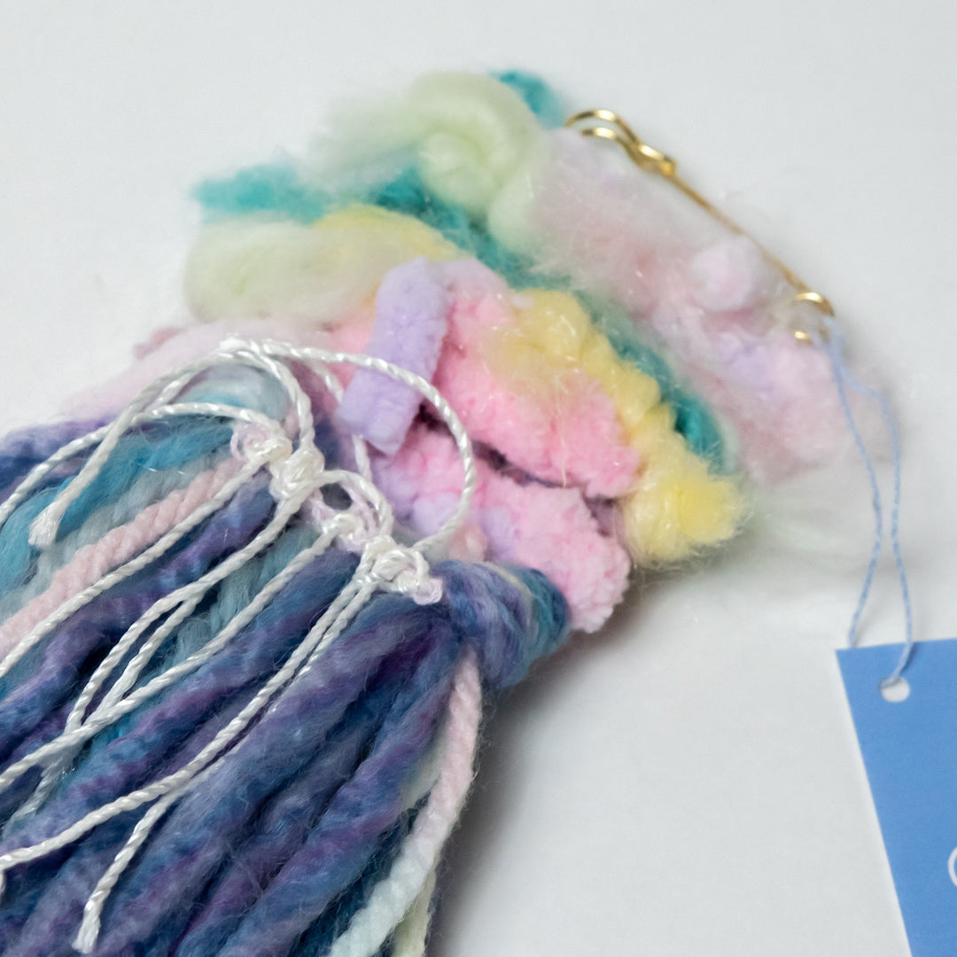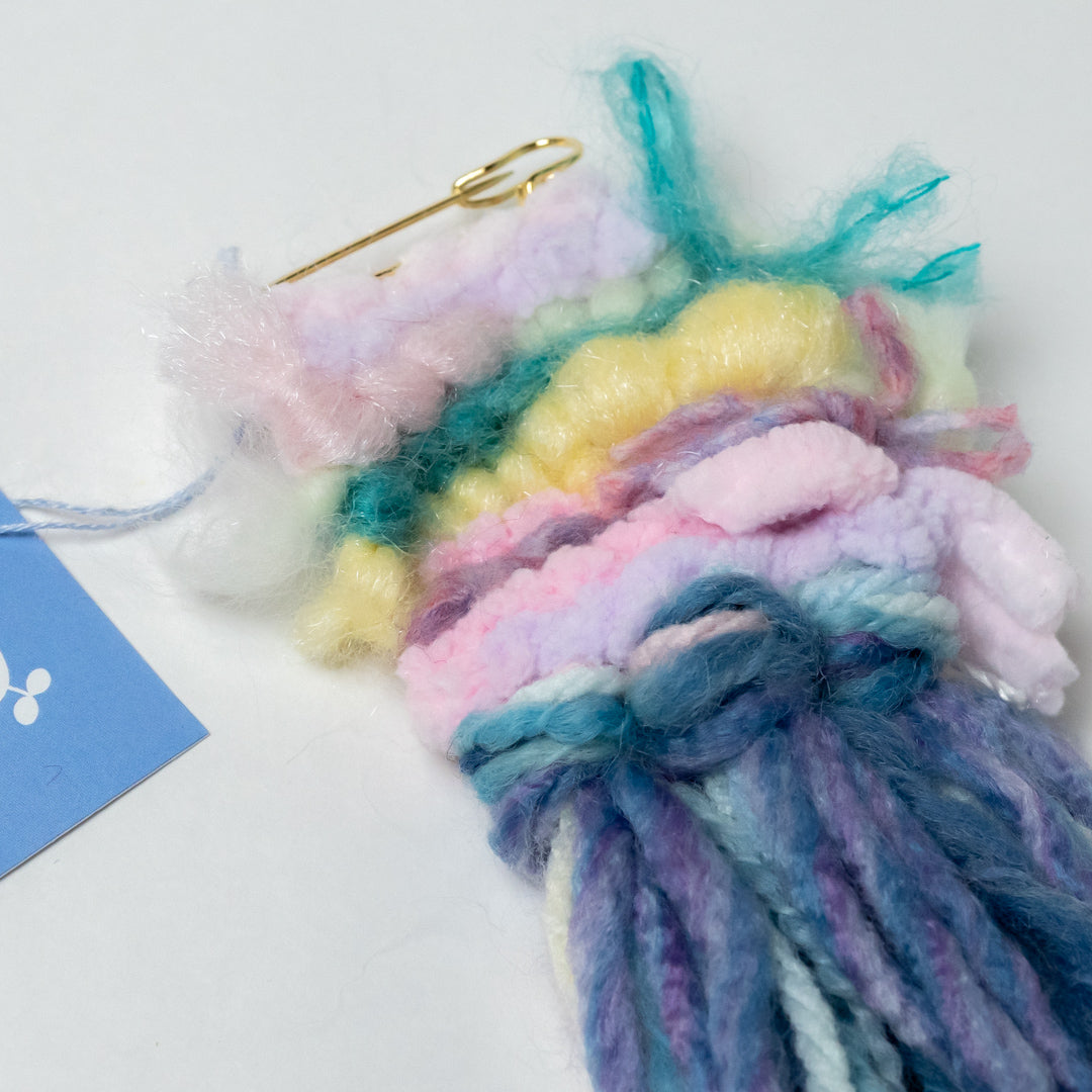 毛糸や糸で編んだブローチです。バッグや帽子、お気に入りの洋服に付けてお楽しみください。