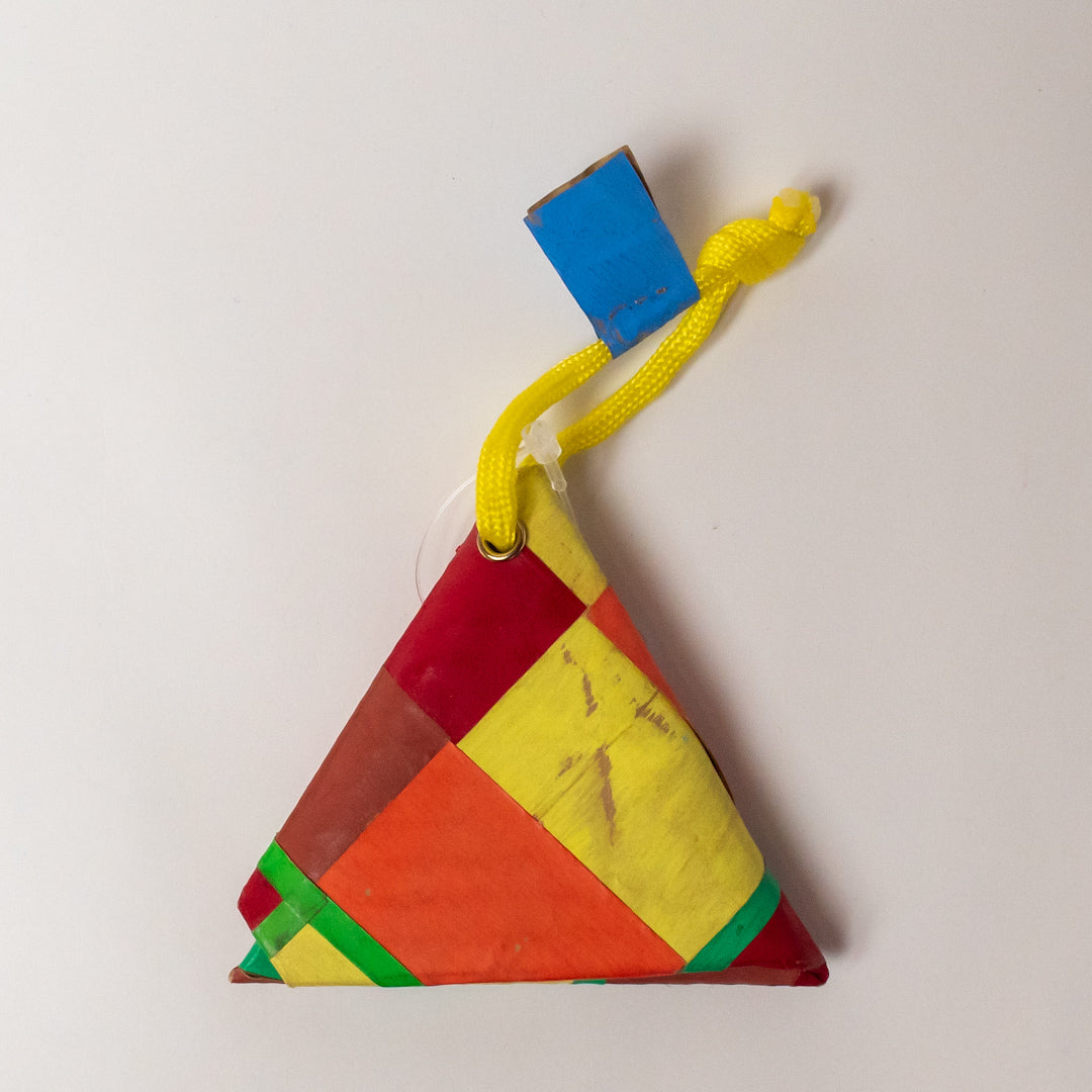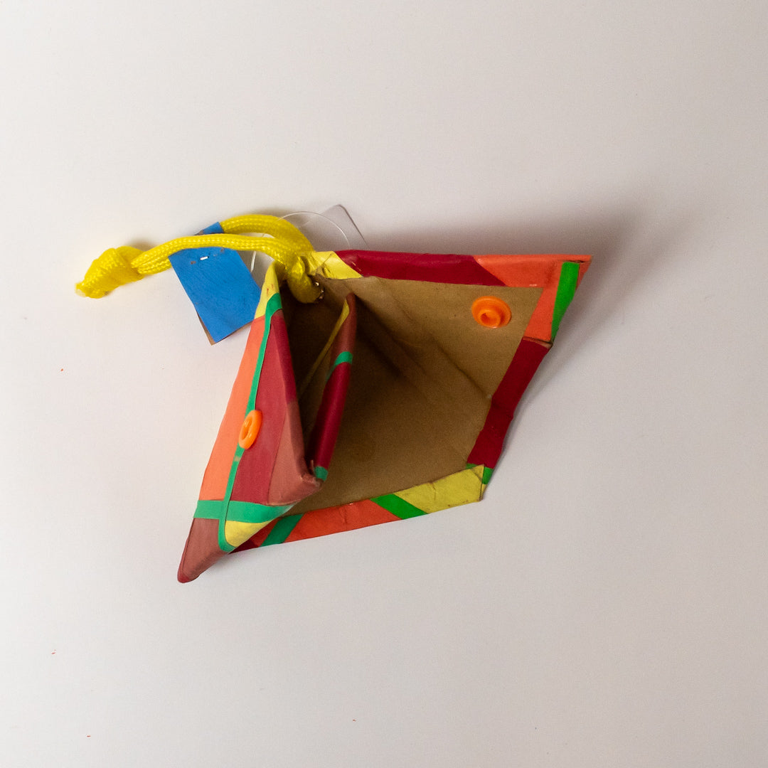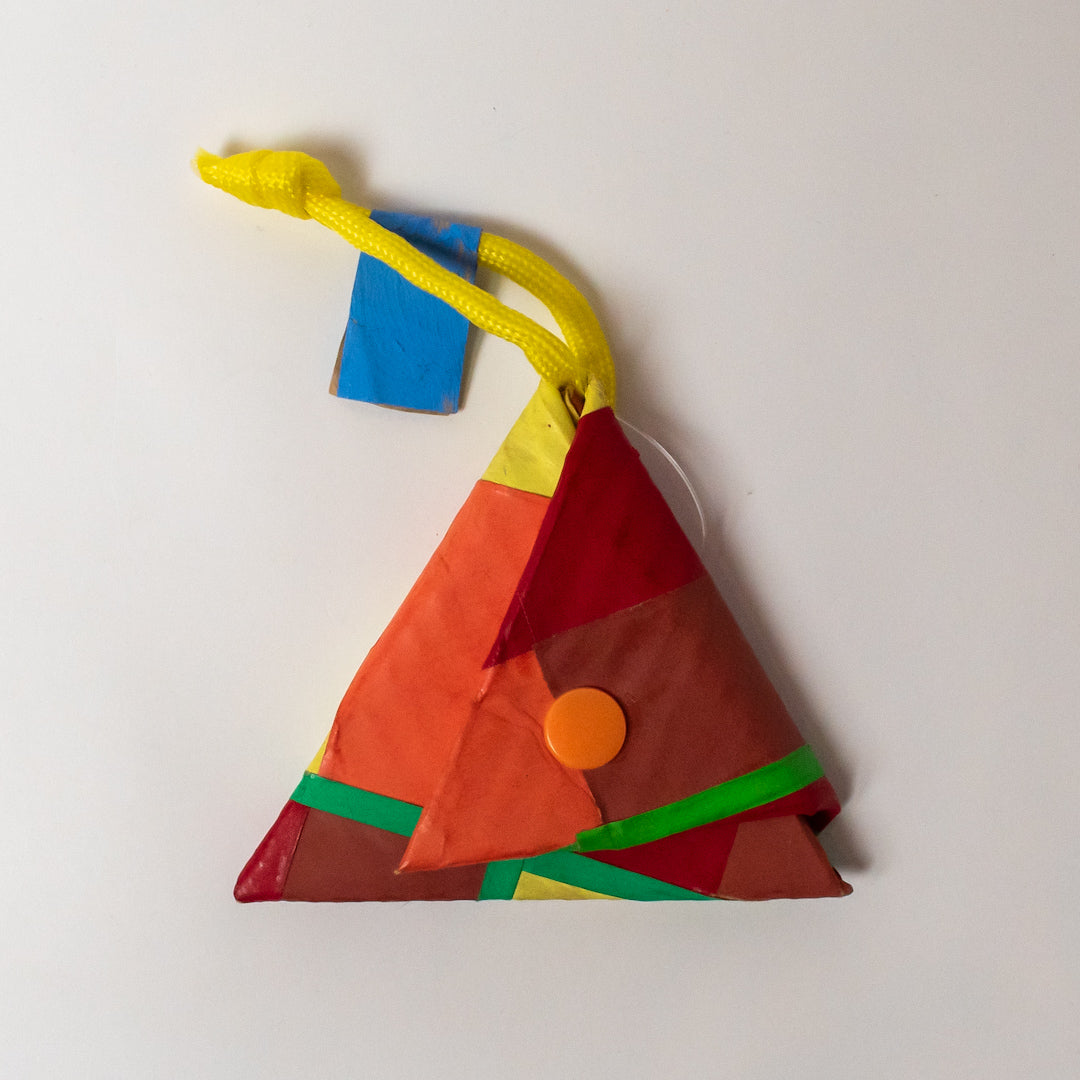三角おにぎりみたいなかわいい形!小銭はこぼれちゃうので、お札を折りたたんでいれるのにぴったりです!