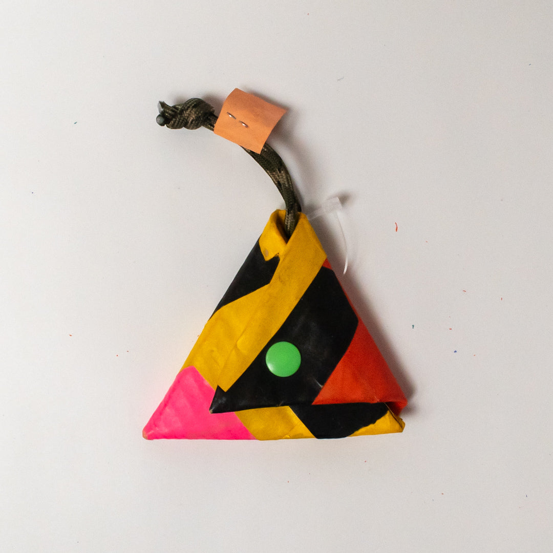 三角おにぎりみたいなかわいい形!小銭はこぼれちゃうので、お札を折りたたんでいれるのにぴったりです!